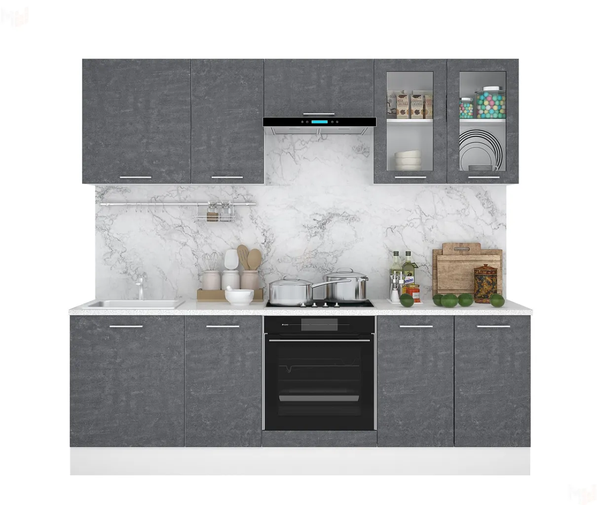 Кухонный гарнитур в стиле Лофт шириной 2400 мм. Модули можно менять местами. Состав комплекта: