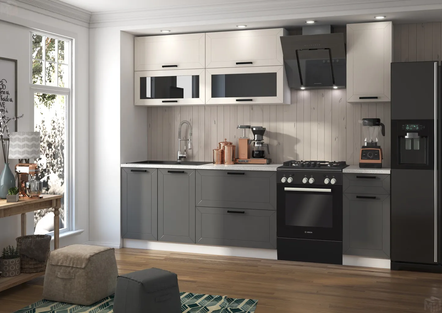 Фасады МДФ белый софт/графит софт.