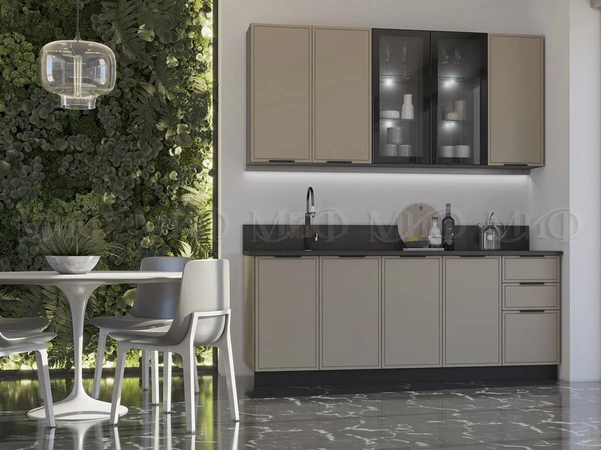 Корпус выполнен из ЛДСП 16 мм Графит, фасады МДФ холст Латте. -