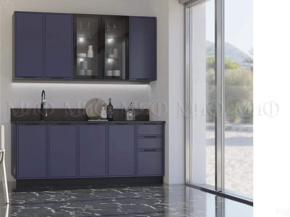 Корпус выполнен из ЛДСП 16 мм Графит, фасады МДФ Сапфировый холст. -