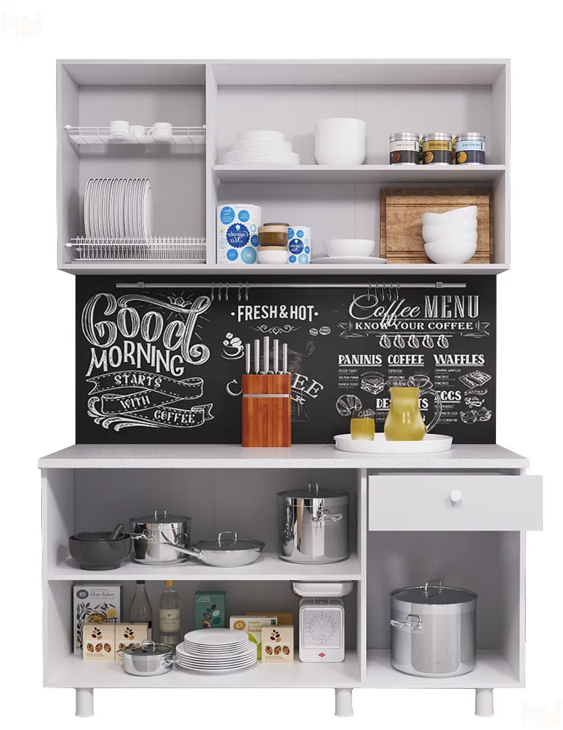 Столешница входит в стоимость. Сушилка для посуды, мойка, плинтус, стеновая панель приобретается дополнительно. -