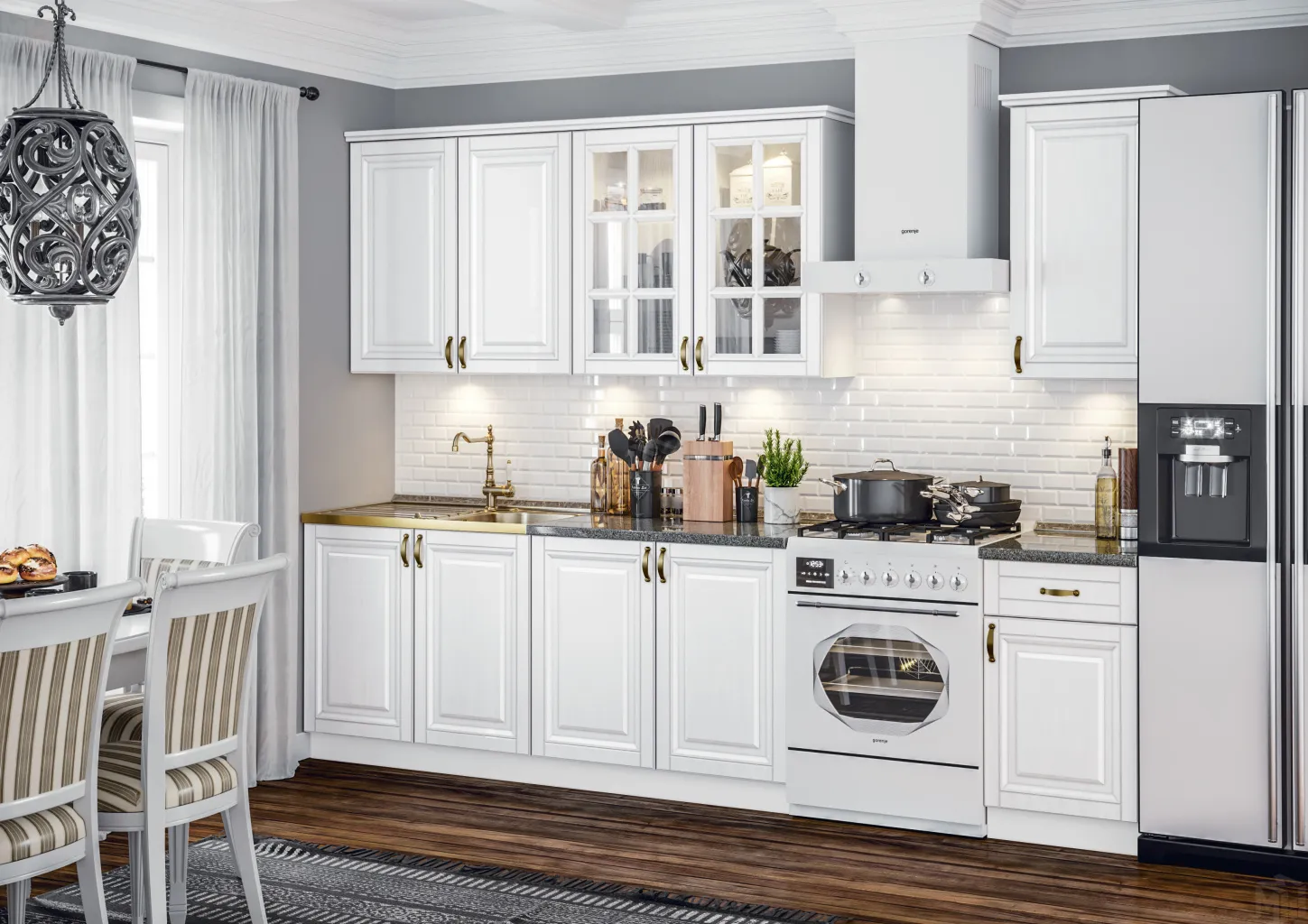 Карнизы и цоколь комплектуются отдельно и в стоимость гарнитура не входят.