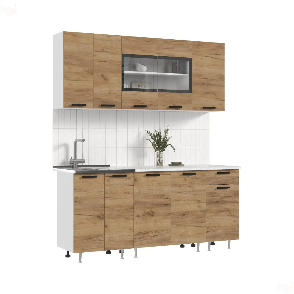 Кухня Рио New 1,8 (490) ЛДСП Дуб крафт, Белый (Антарес)