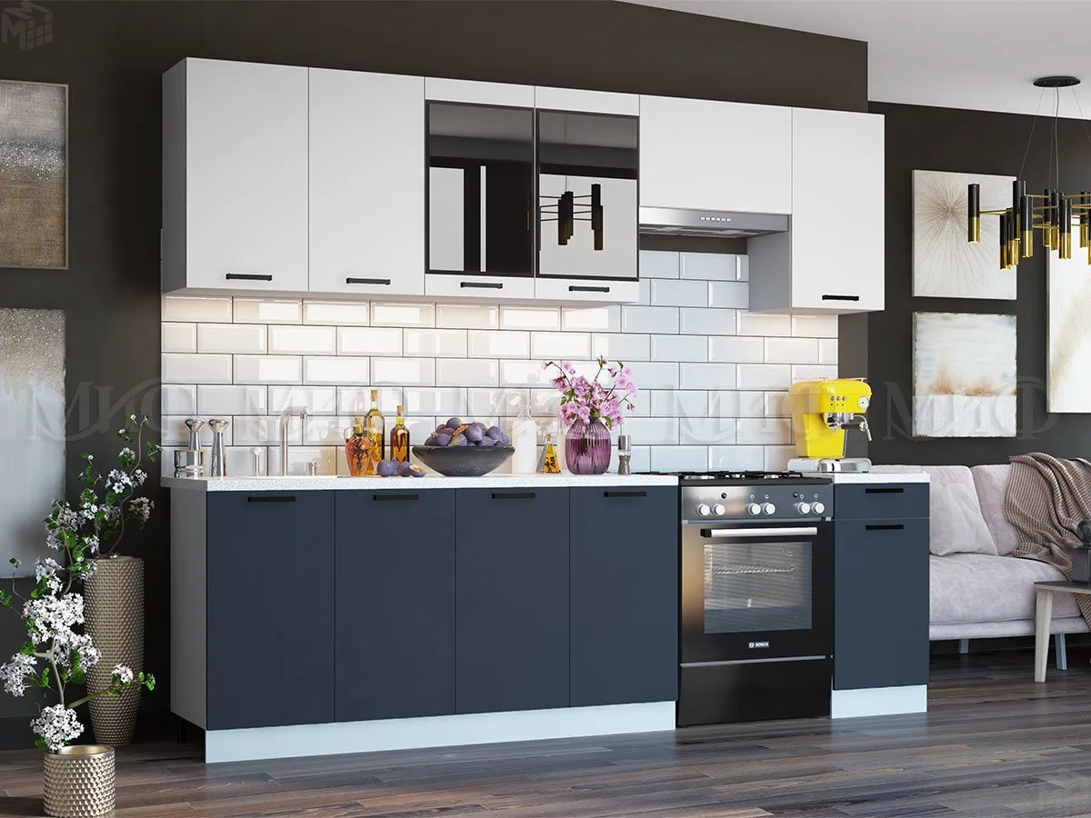 Кухня Техно New 2,6 комп. №3 Белый снег софт/Ультрамарин софт