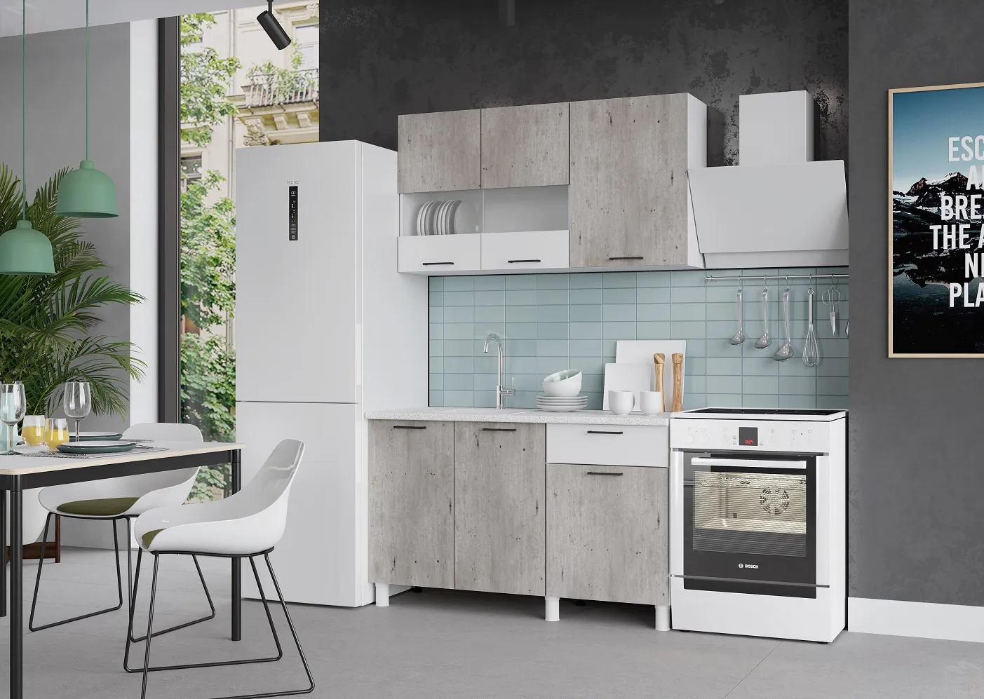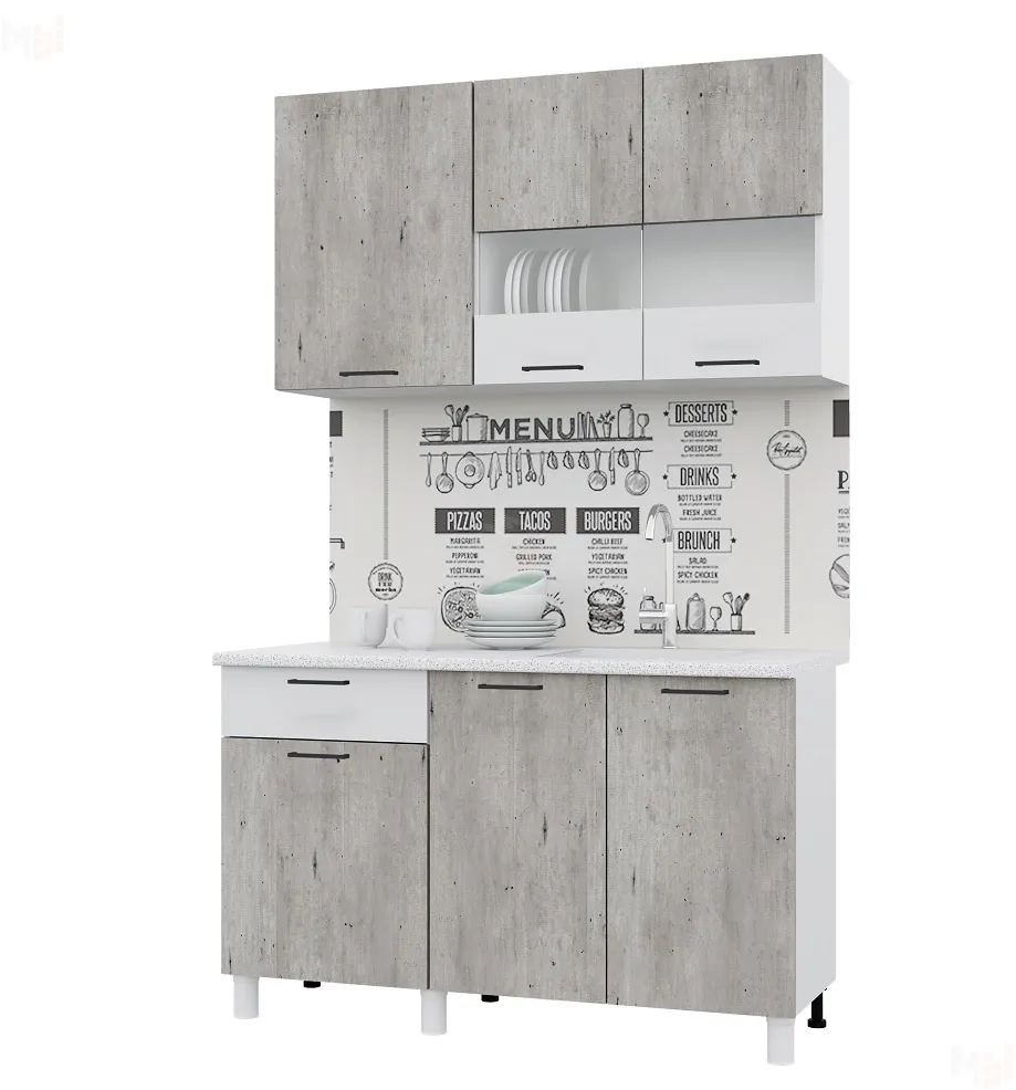 Кухня ТРЕНД 1,3 МДФ белый эмалит/бетон лайт