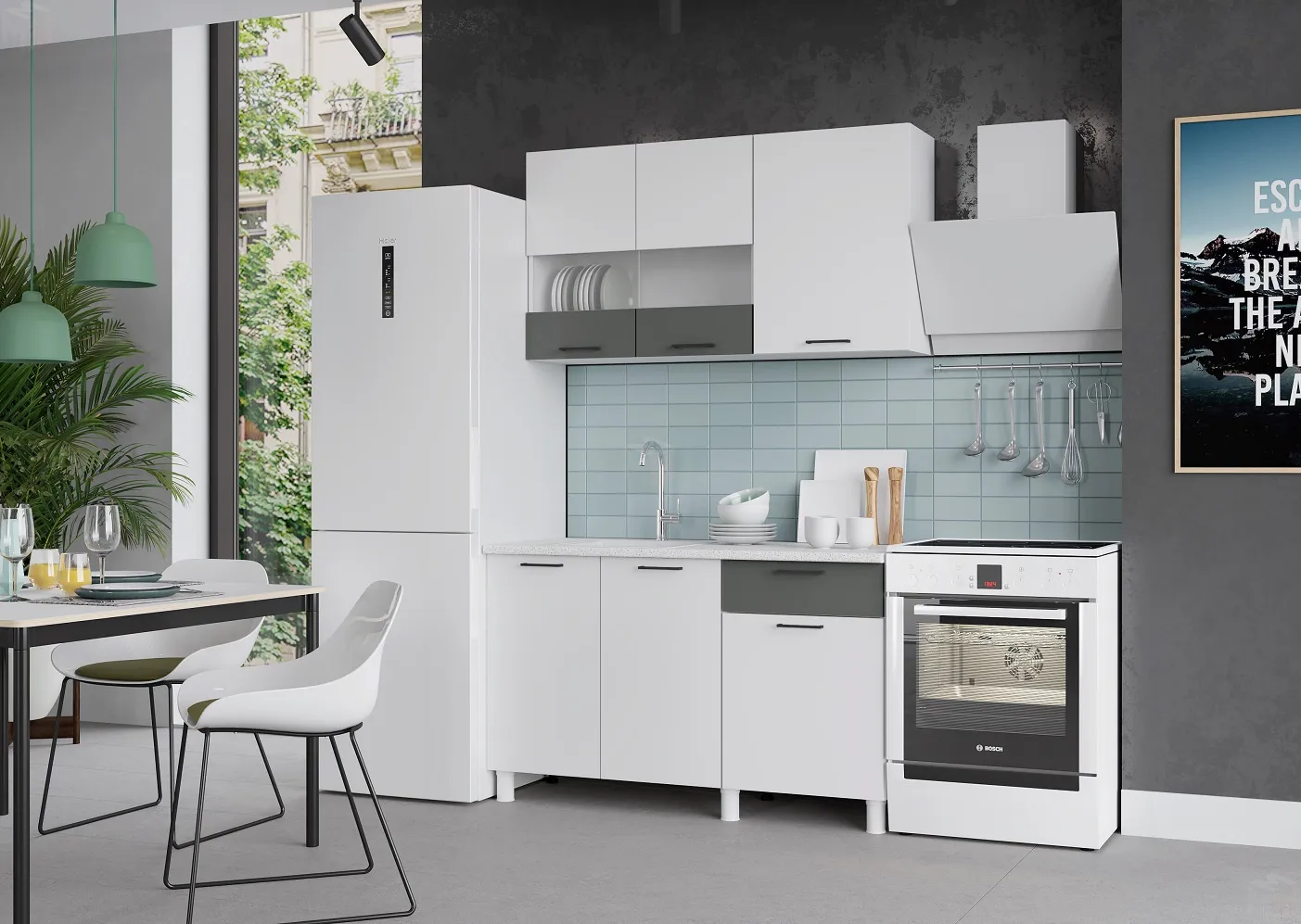 Кухня ТРЕНД 1,3 МДФ белый эмалит/холст вулкан