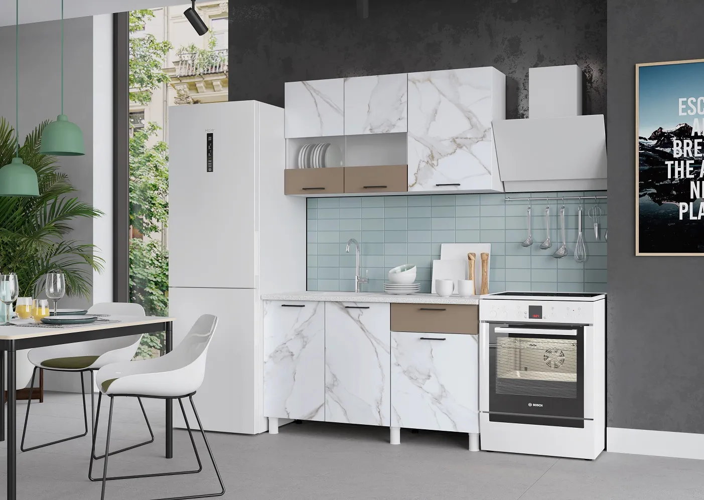 Фасады МДФ Мрамор милк/Холст латте, корпус ЛДСП белый 16 мм.