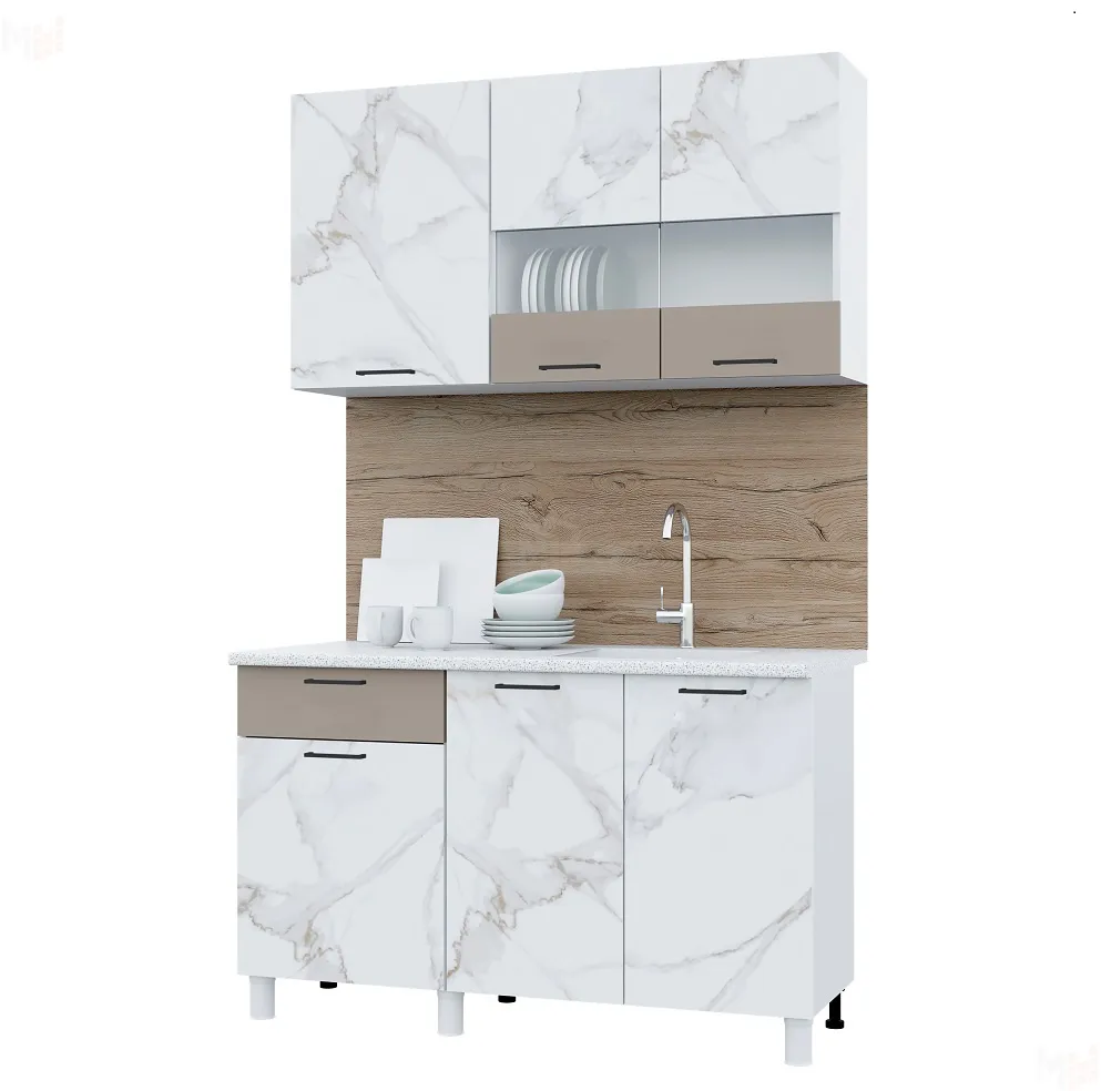Кухня ТРЕНД 1,3 МДФ мрамор милк/холст латте
