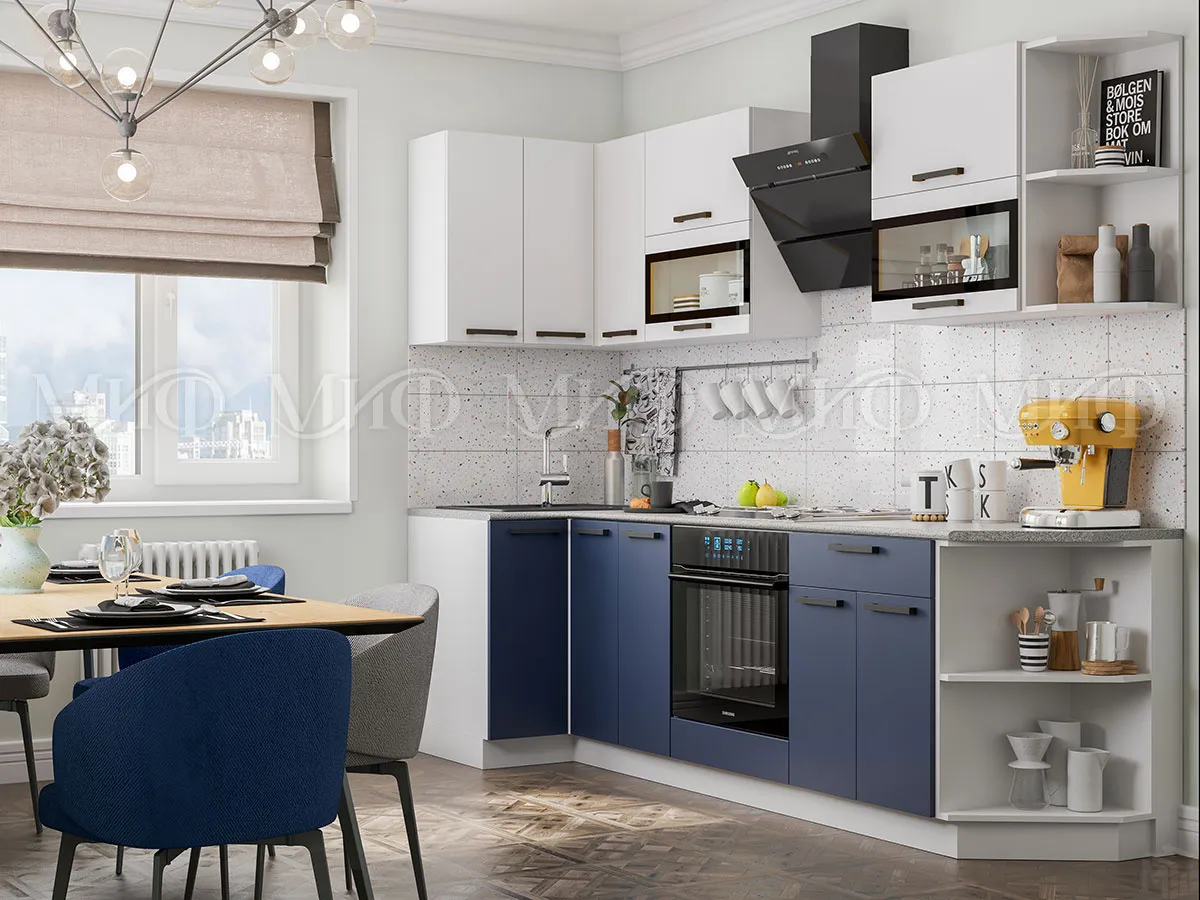 Кухня угловая Техно New 0,9*2,7 Белый софт/Ультрамарин софт