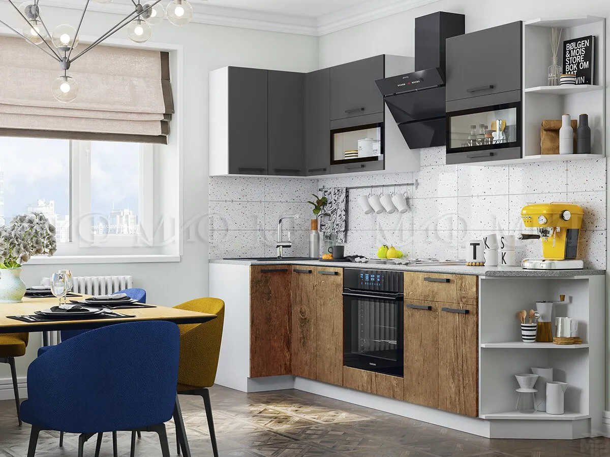 Кухня угловая Техно New 0,9*2,7 Графит софт/Экзотическое дерево амазония