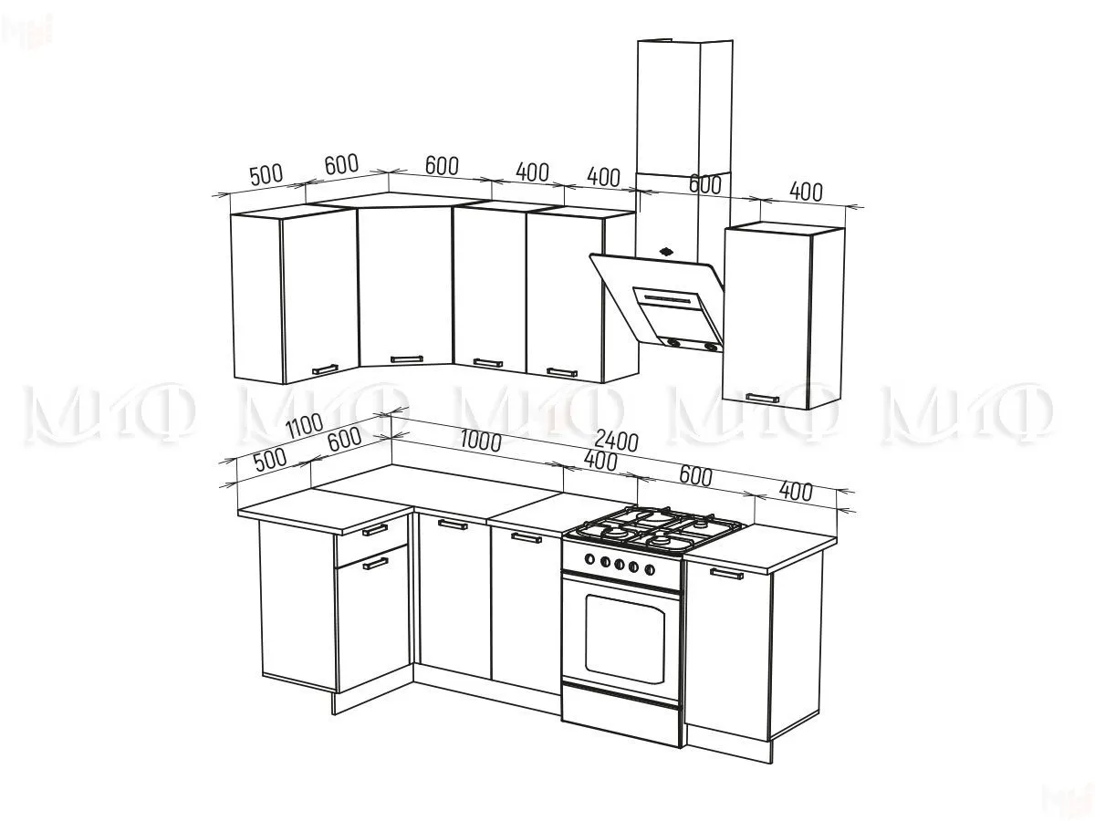 Угловой кухонный гарнитур для небольшой кухни или студии.