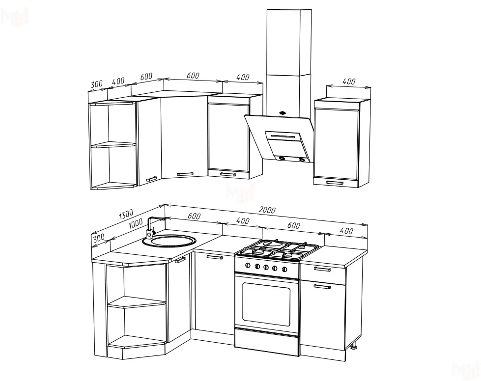 - Столешница Антарес 26 мм 1000 мм, 400 мм - 2 шт, стол торцевой 300 левый.