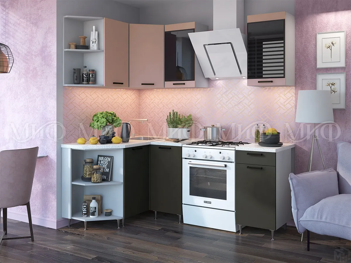 Кухня угловая Техно New 1,3*1,4 Пудра Софт/Графит Софт