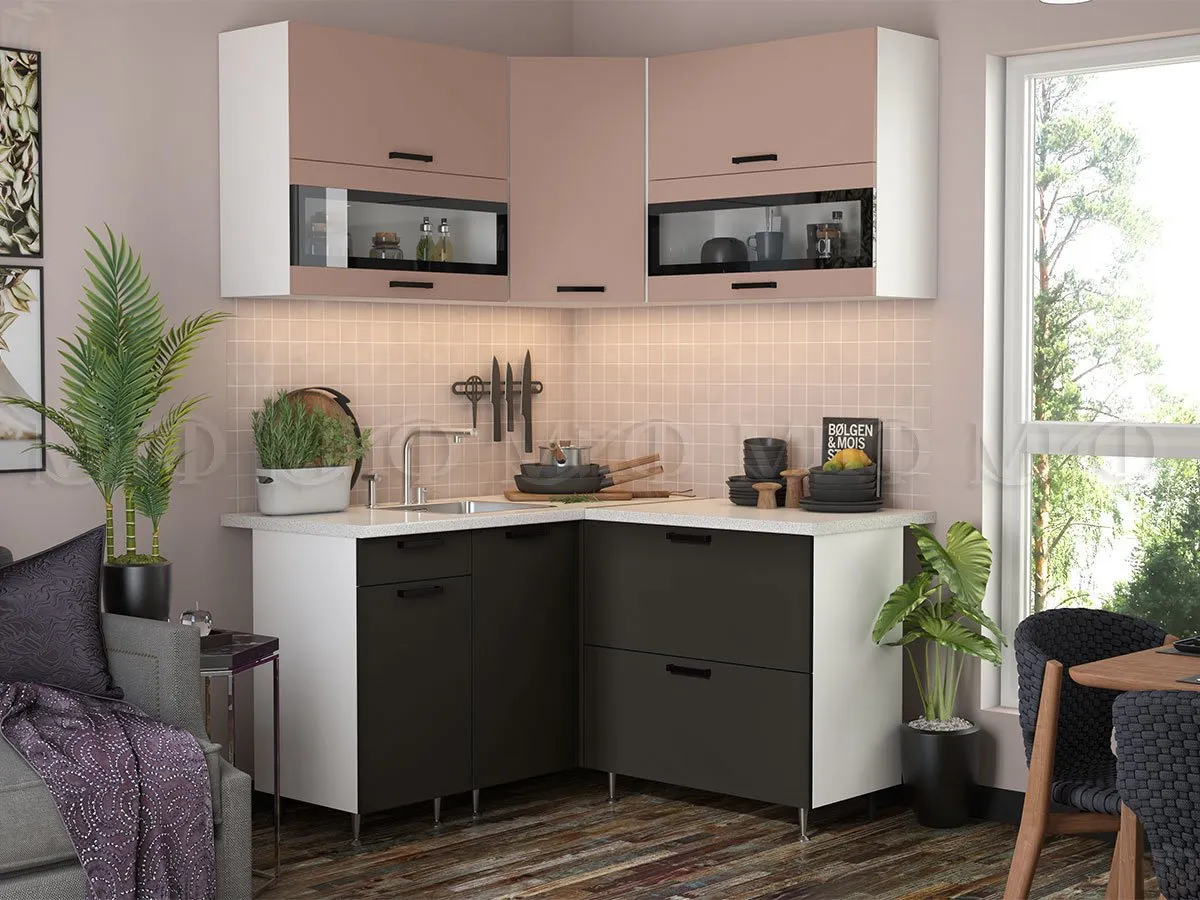 Кухня угловая Техно New 1,4*1,4 Пудра софт/Графит софт