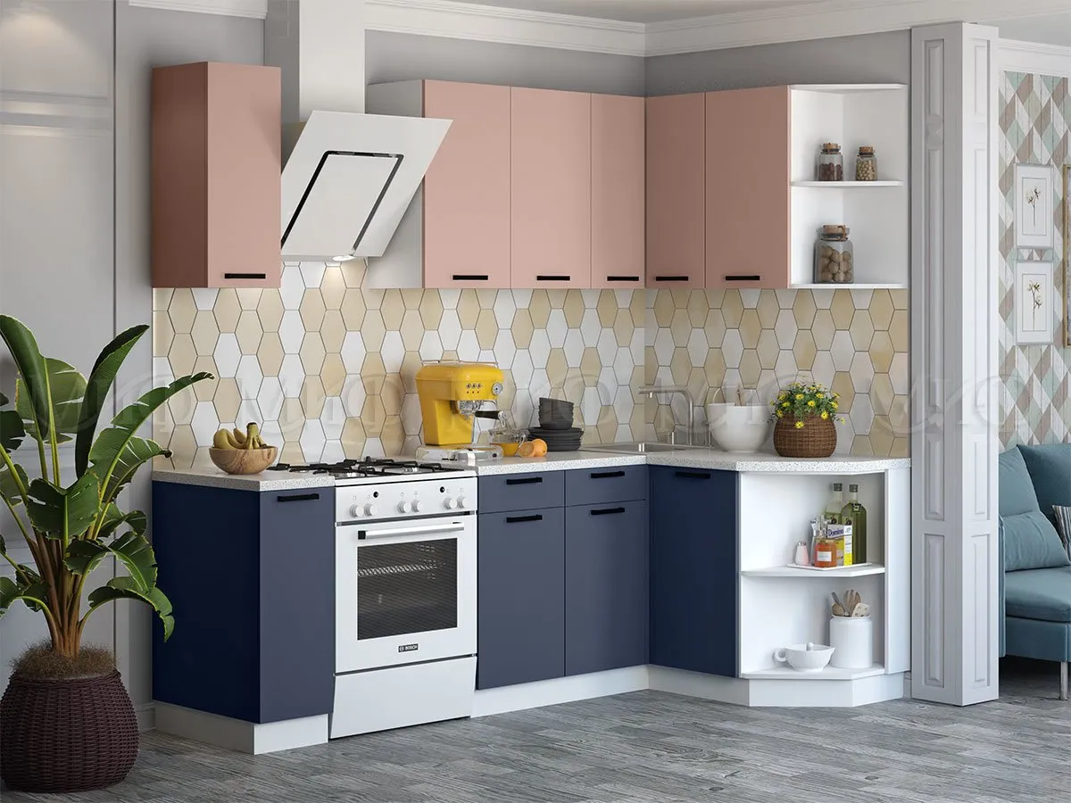 Кухня угловая Техно New 1,7*1,3 Пудра софт/Ультрамарин софт