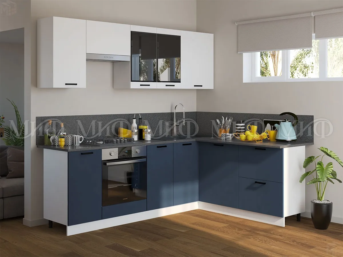 Кухня угловая Техно New 2,4*1,8 Белый софт/Ультрамарин софт