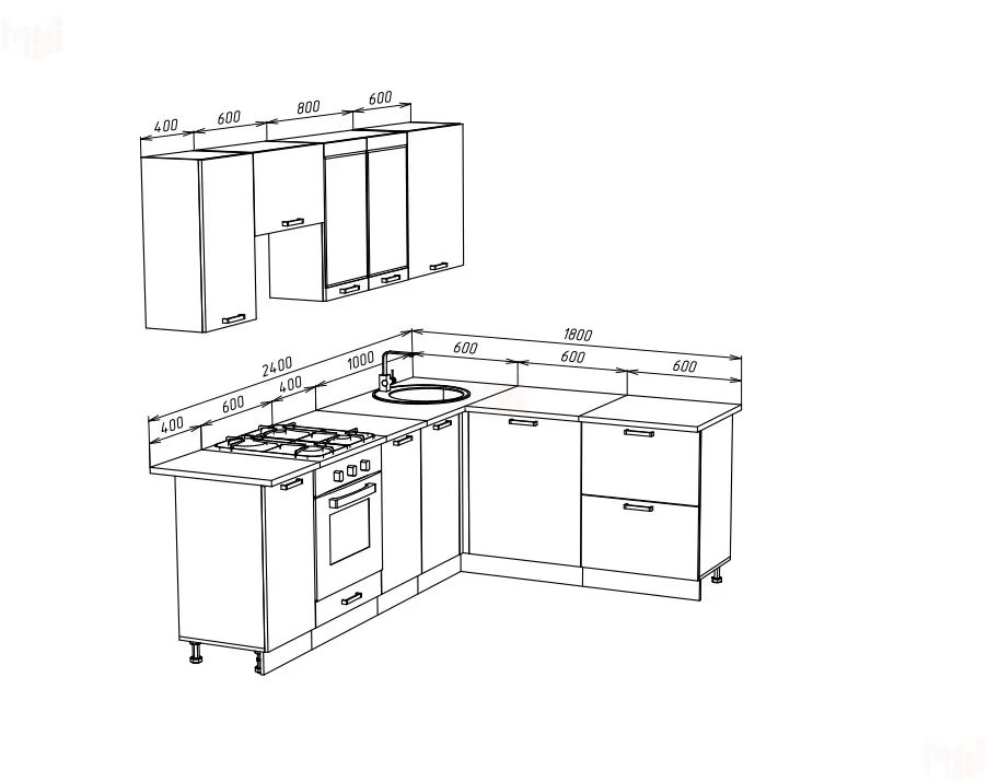 Сушилка, мойка, стеновая панель, бытовая техника приобретаются дополнительно. -