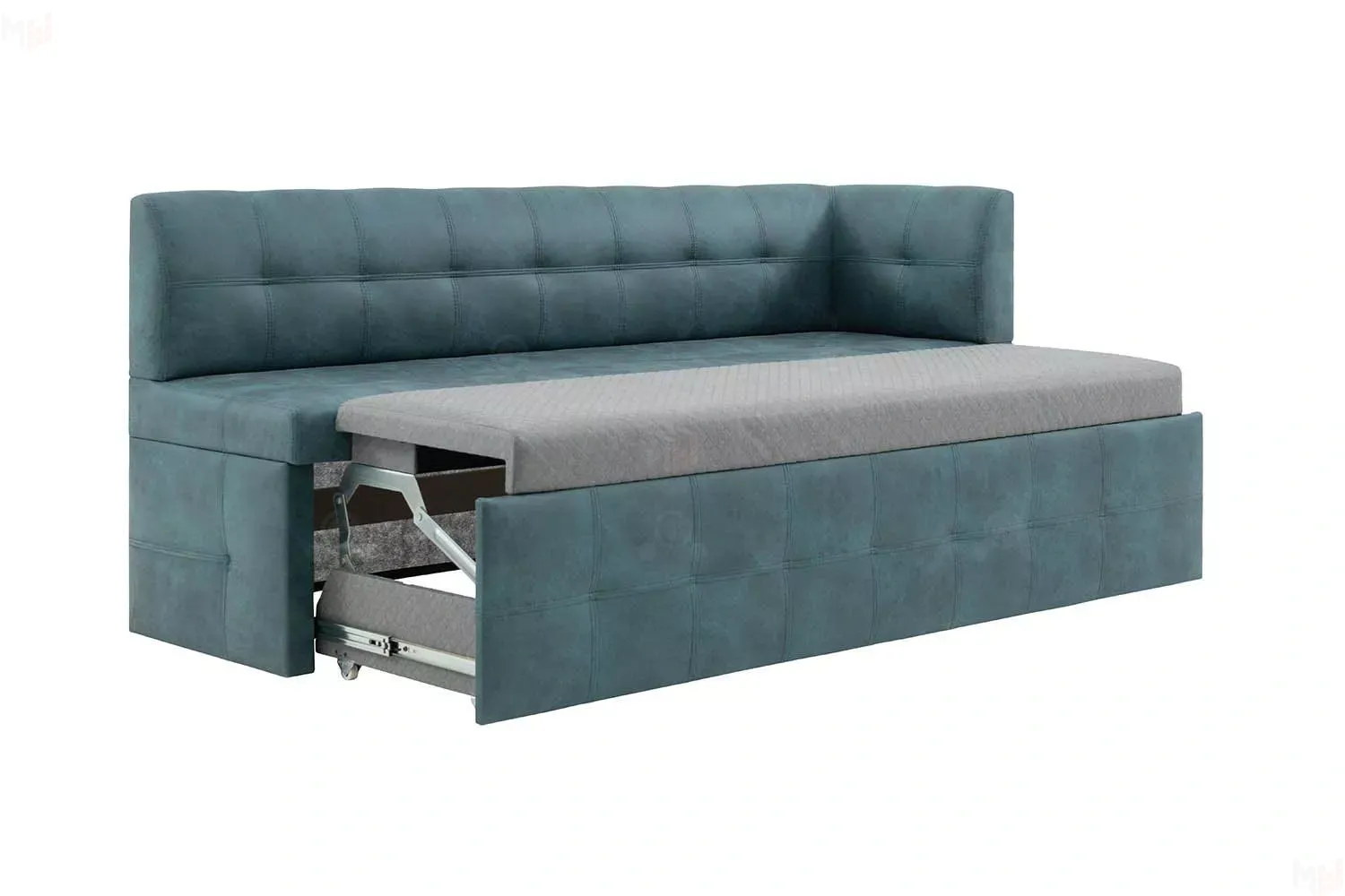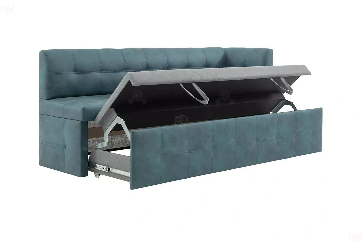 Компактная модель, глубина которой всего лишь 55 см. Не выглядит громоздко, отлично впишется как в просторное, так и небольшое помещение кухни. Отсутствие подлокотников смотрится стильно и позволит сэкономить пространство. Боковая спинка способствует комфортному отдыху. Наличие механизма трансформации «дельфин» позволит создать дополнительное спальное место. Лаконичные формы, декоративная двойная прострочка с утяжкой по спинке и сиденью смотрятся красиво и стильно. Для удобства покупателя, предусмотрен большой выбор габаритов модели. Размеры дивана можно подобрать с шагом каждые 10 см, от 123 до 203 см. Каркас дивана изготовлен из фанеры, что увеличивает срок эксплуатации дивана, используемые материалы экологичны и безопасны.