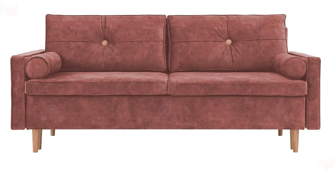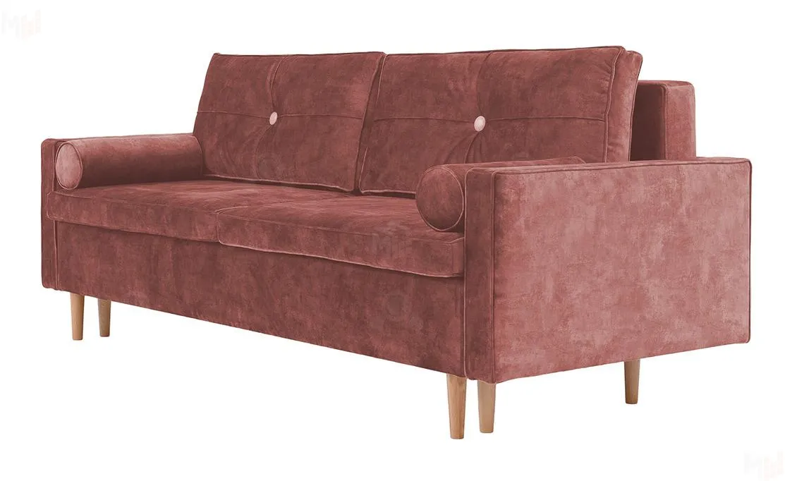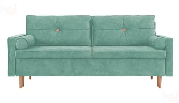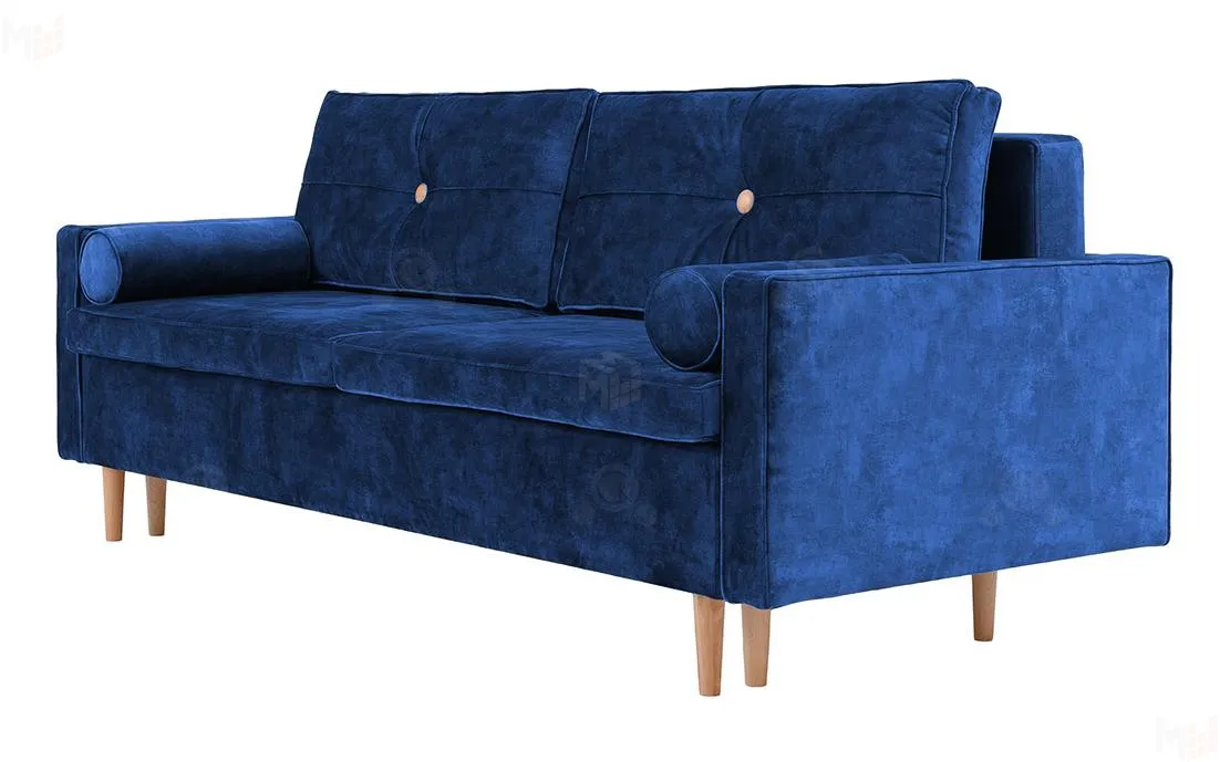 Сдержанный скандинавский дизайн украсит любую современную обстановку. Приспинные подушки украшены круглыми пуговицами из массива бука в тон деревянным ножкам.