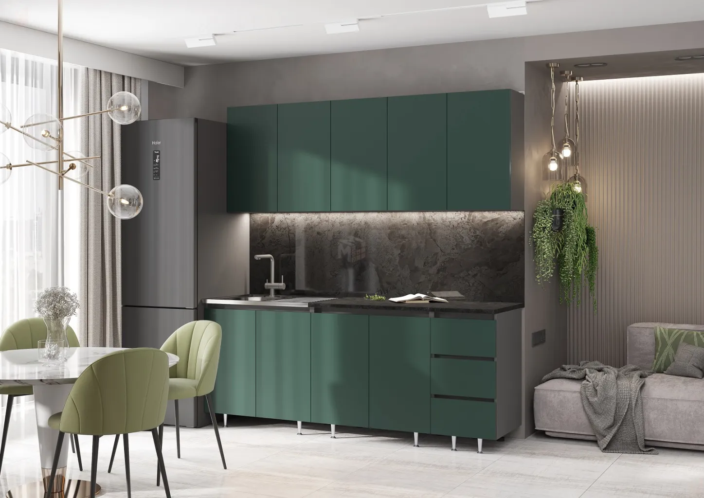 Кухонный гарнитур Челси 2,0 (графит/изумрудный, кастилло темный)