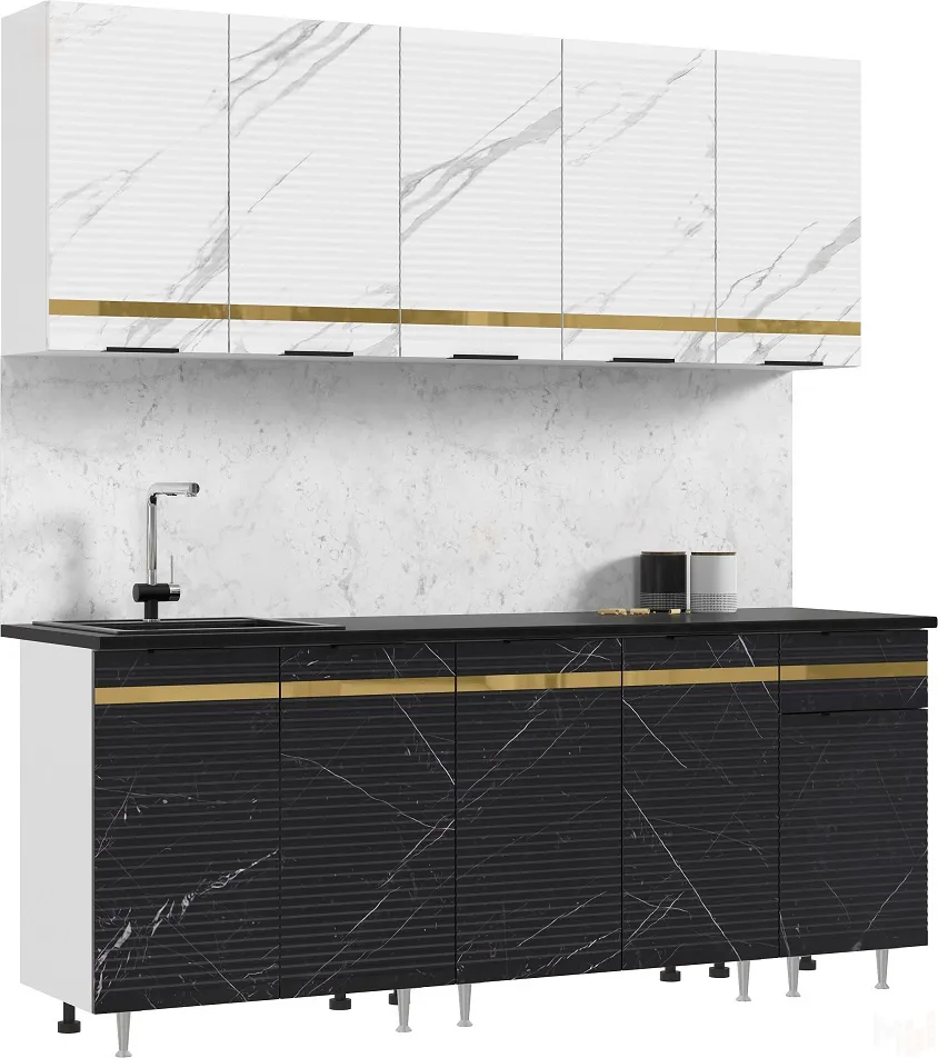 Кухонный гарнитур Милена 2,0 (мрамор белый/мрамор блэк)