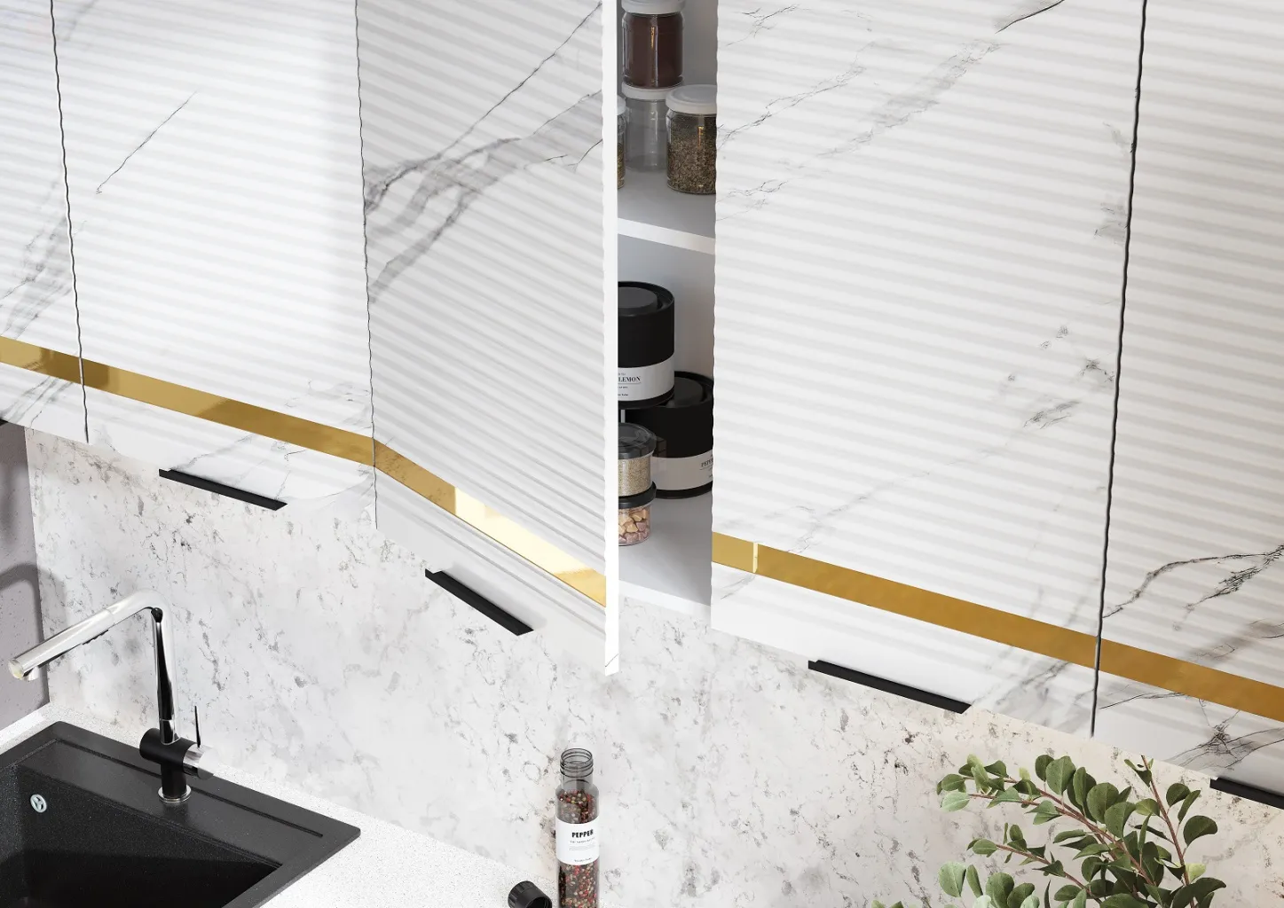 Кухонный гарнитур Милена 2,0 (мрамор золото)