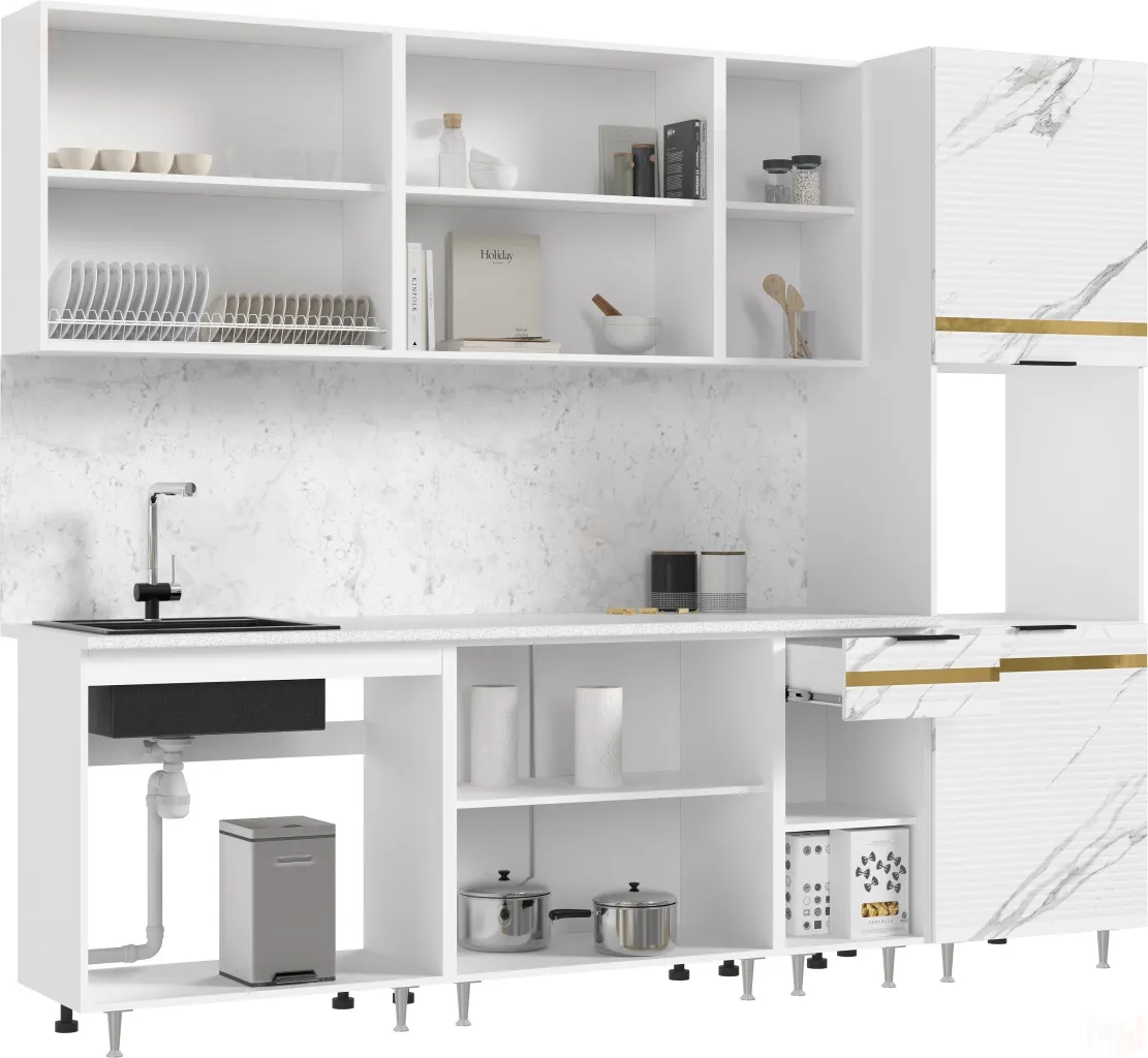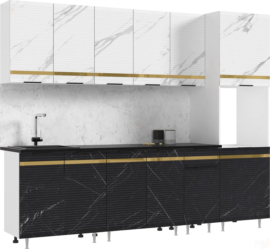 Кухонный гарнитур Милена с пеналом 2,6 (мрамор белый софт/мрамор блэк софт))