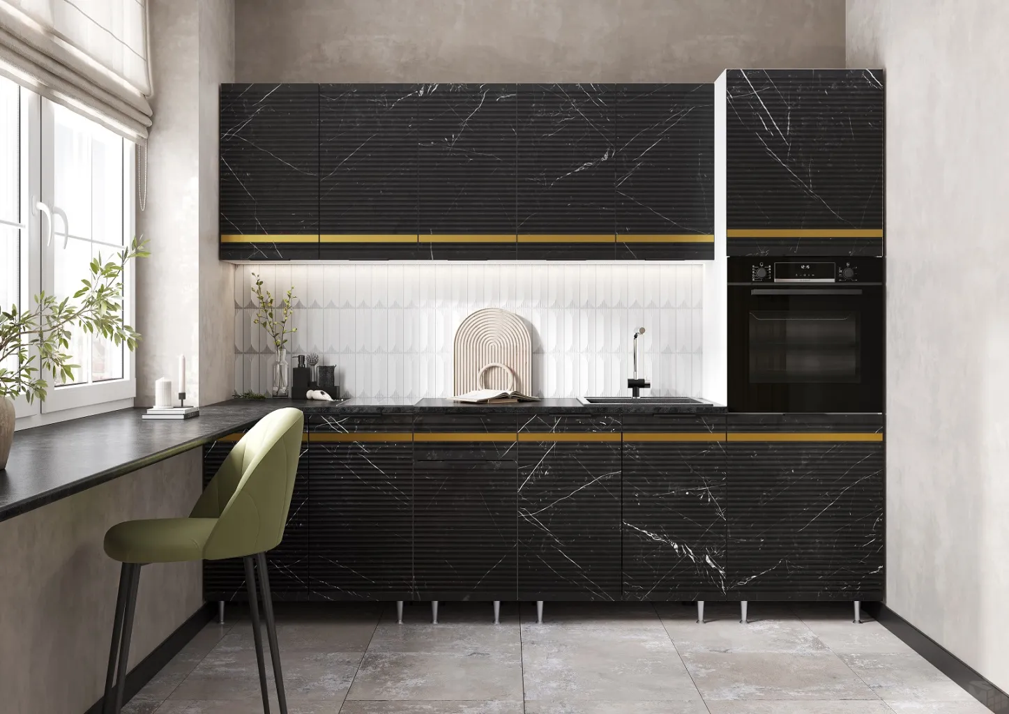 Кухонный гарнитур Милена с пеналом 2,6 (мрамор блэк софт)