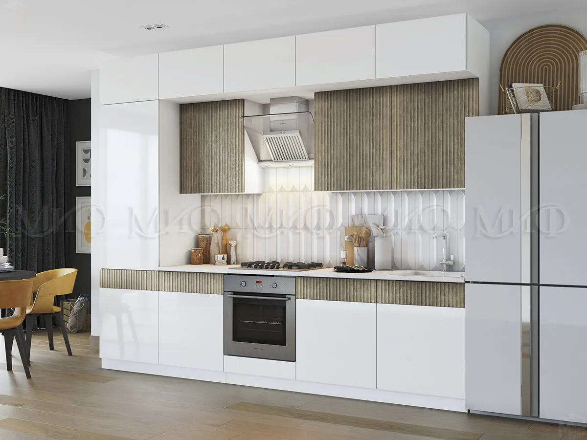 Кухонный гарнитур Оливия 3,0 (белый глянец/голден пэлас)