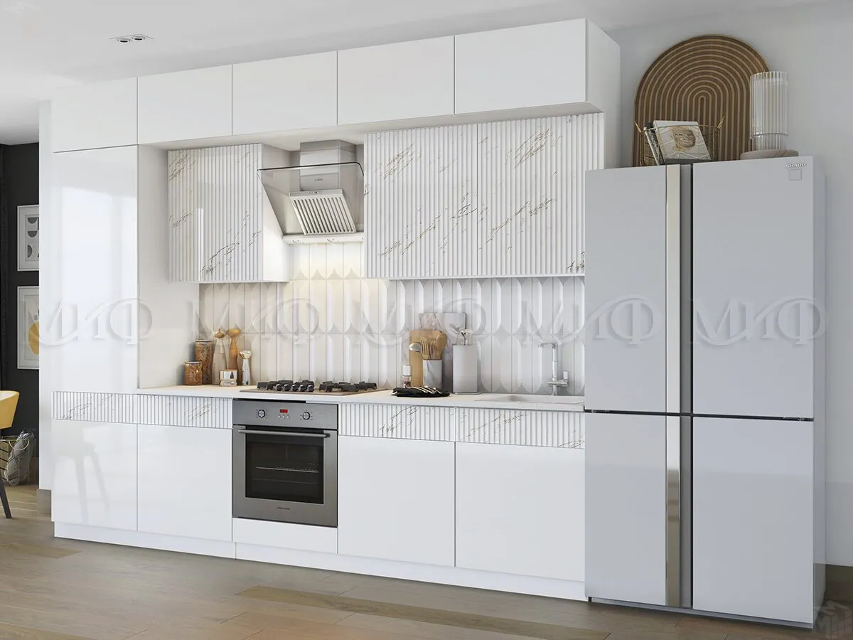 Кухонный гарнитур Оливия 3,0 (белый глянец/мрамор золото)