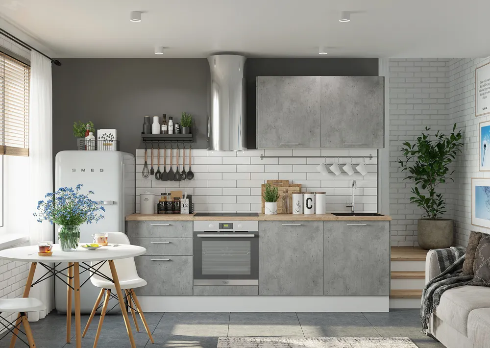 Корпус выполнен из ЛДСП белого цвета 16 мм, фасады МДФ Гранит дым.