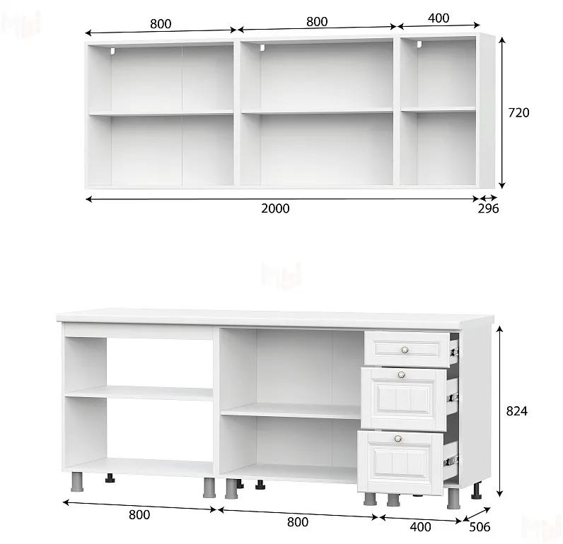 Столешница, стеновая панель, а также дополнительное оборудование (мойка, смеситель, бытовая техника) приобретаются отдельно.