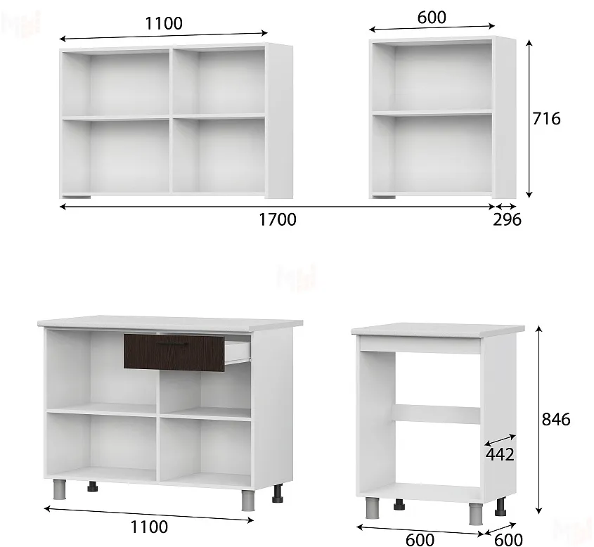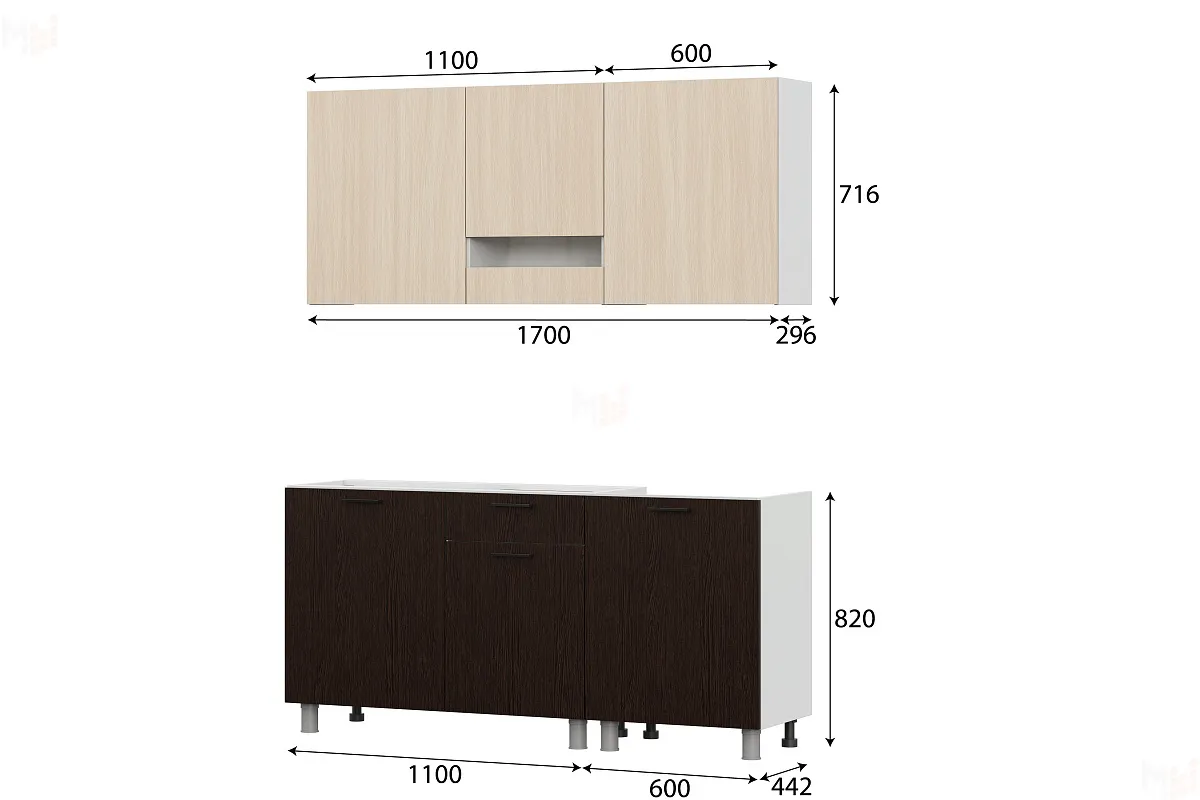 Тип: Готовое решение для кухни шириной 1,7 м.