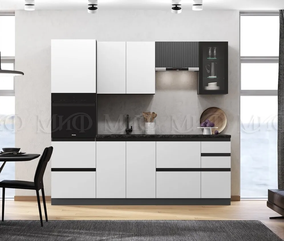 Кухонный гарнитур Техно-6 2,4 (белый снег софт/графит софт)