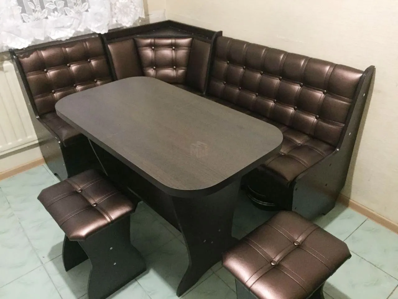 В комплекте: скамья угловая + стол + 2 табурета.