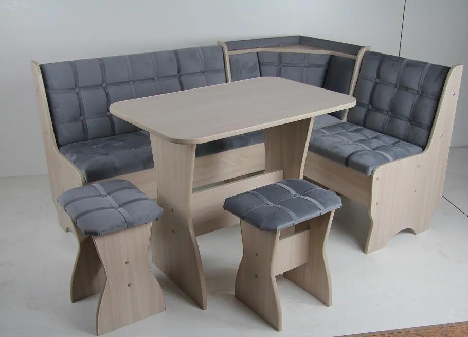 В комплекте: скамья угловая + стол + 2 табурета.