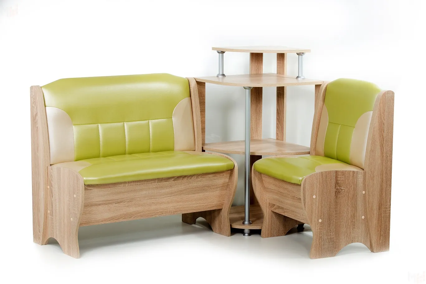 Угловая скамья Лотос имеет 2 ящика под сидениями для хранения мелочей. Каркас выполнен из ЛДСП дуб сонома, обивка выполнена из кожзама Терра эффект 105/101. -