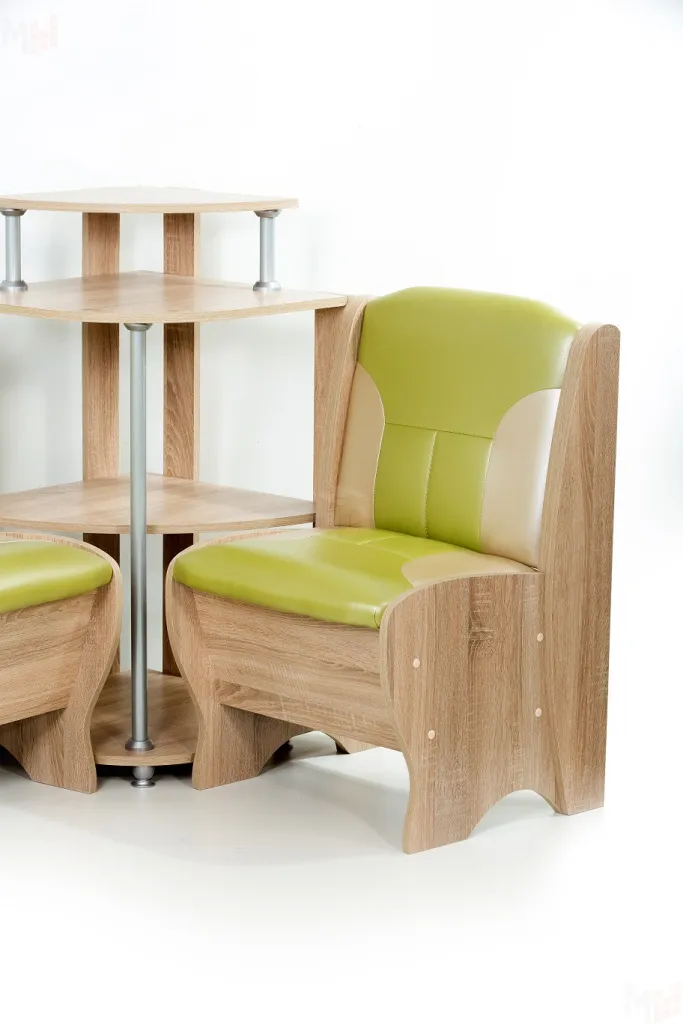 - две кухонные скамьи Лотос размеры: малая длиной 550 мм и большая длиной 950 мм, обе с внутренним ящиком под сидением. Высота посадки скамьи 450 мм