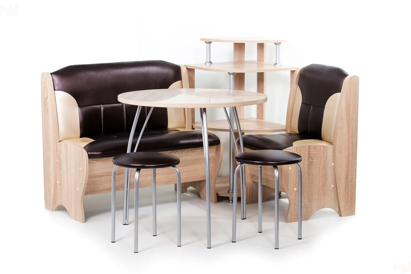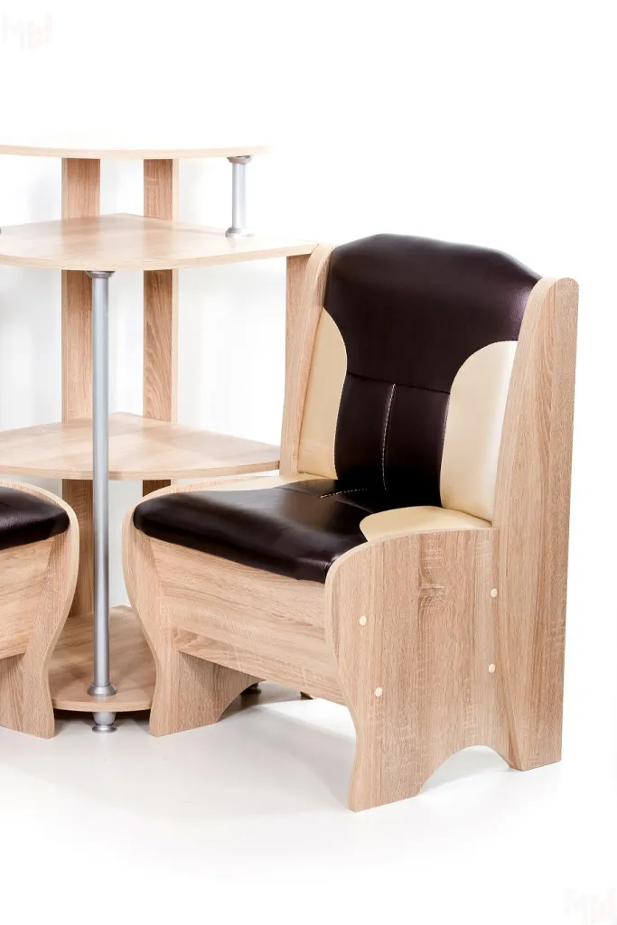 Угловая скамья Лотос имеет 2 ящика под сидениями для хранения мелочей. Каркас выполнен из ЛДСП дуб сонома, обивка выполнена из кожзама Терра эффект 221/101. -