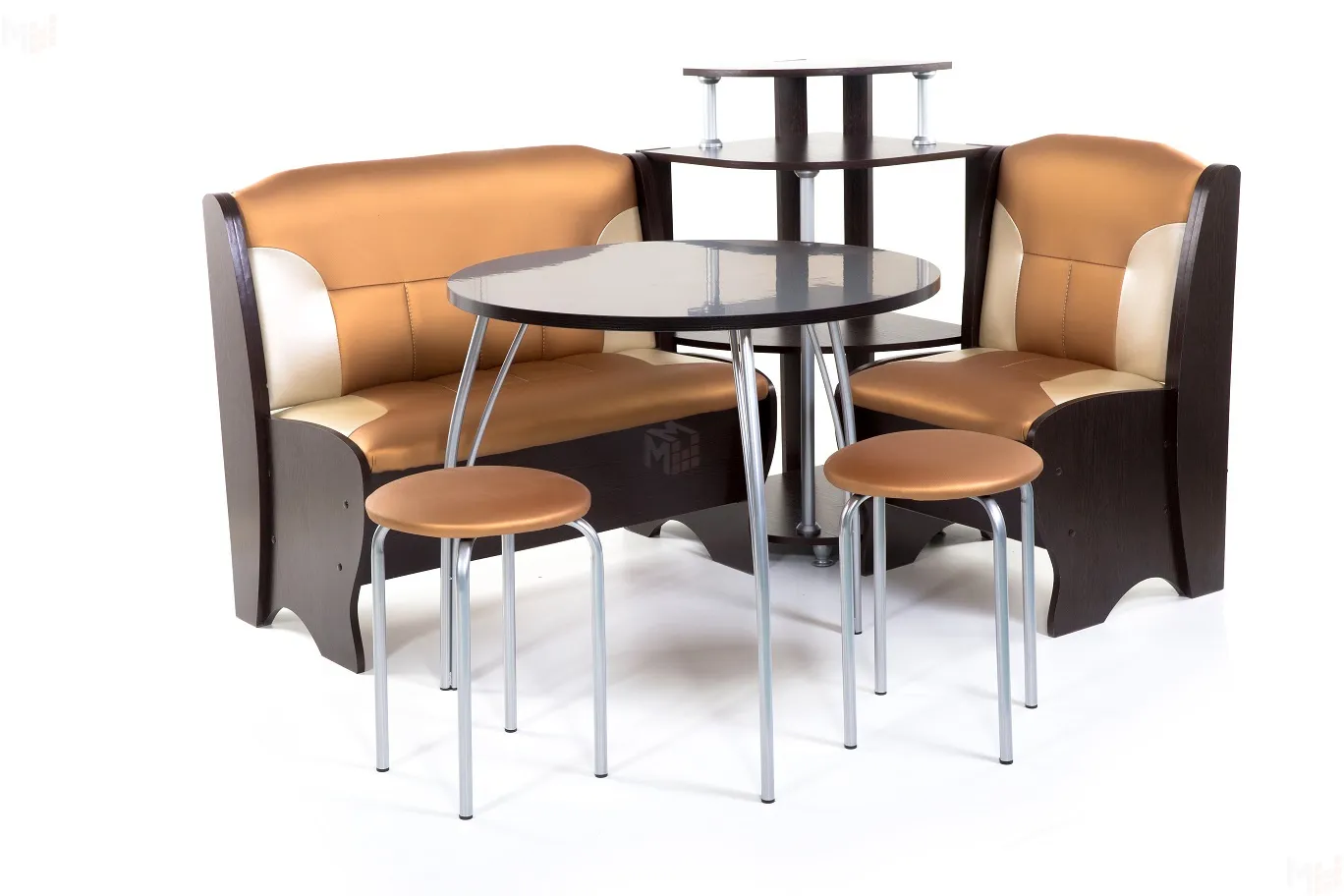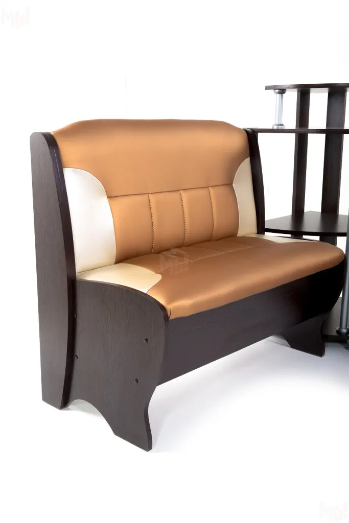 Угловая скамья Лотос имеет 2 ящика под сидениями для хранения мелочей. Каркас выполнен из ЛДСП венге, обивка выполнена из кожзама Терра эффект 109/101. -