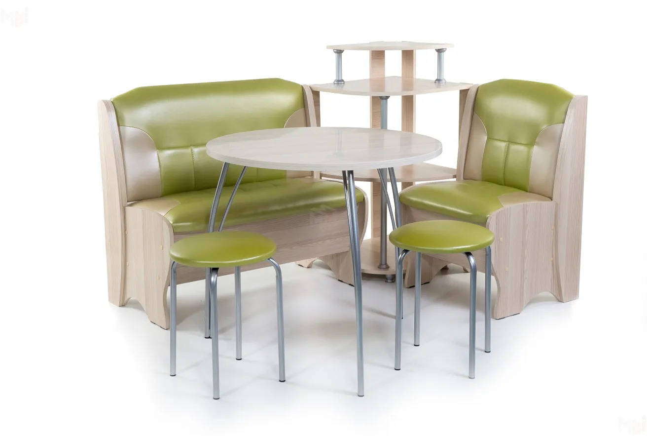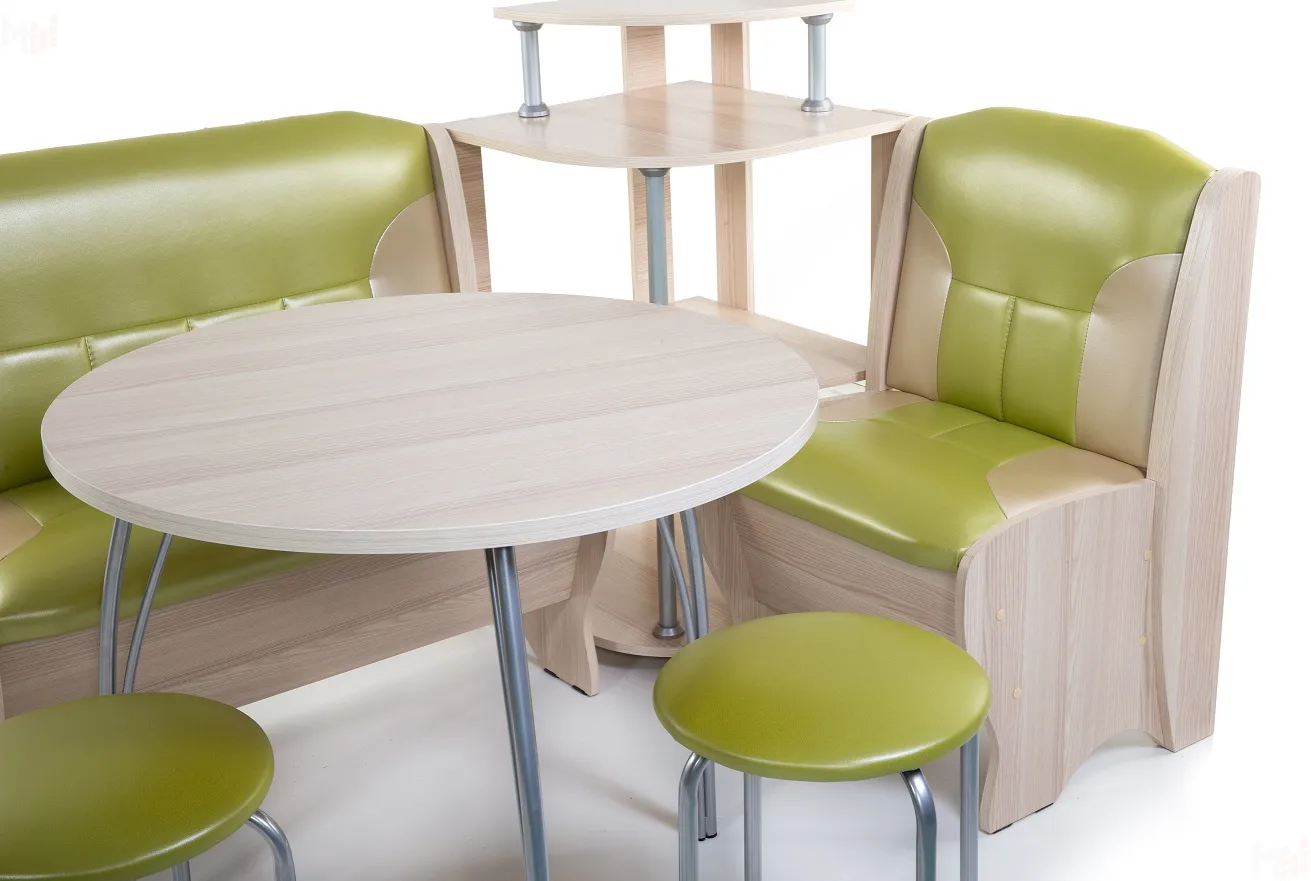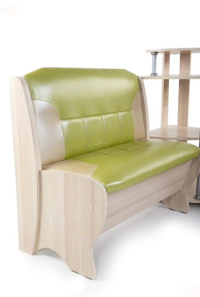 Угловая скамья Лотос имеет 2 ящика под сидениями для хранения мелочей. Каркас выполнен из ЛДСП ясень шимо, обивка выполнена из кожзама Терра эффект 105/101. -
