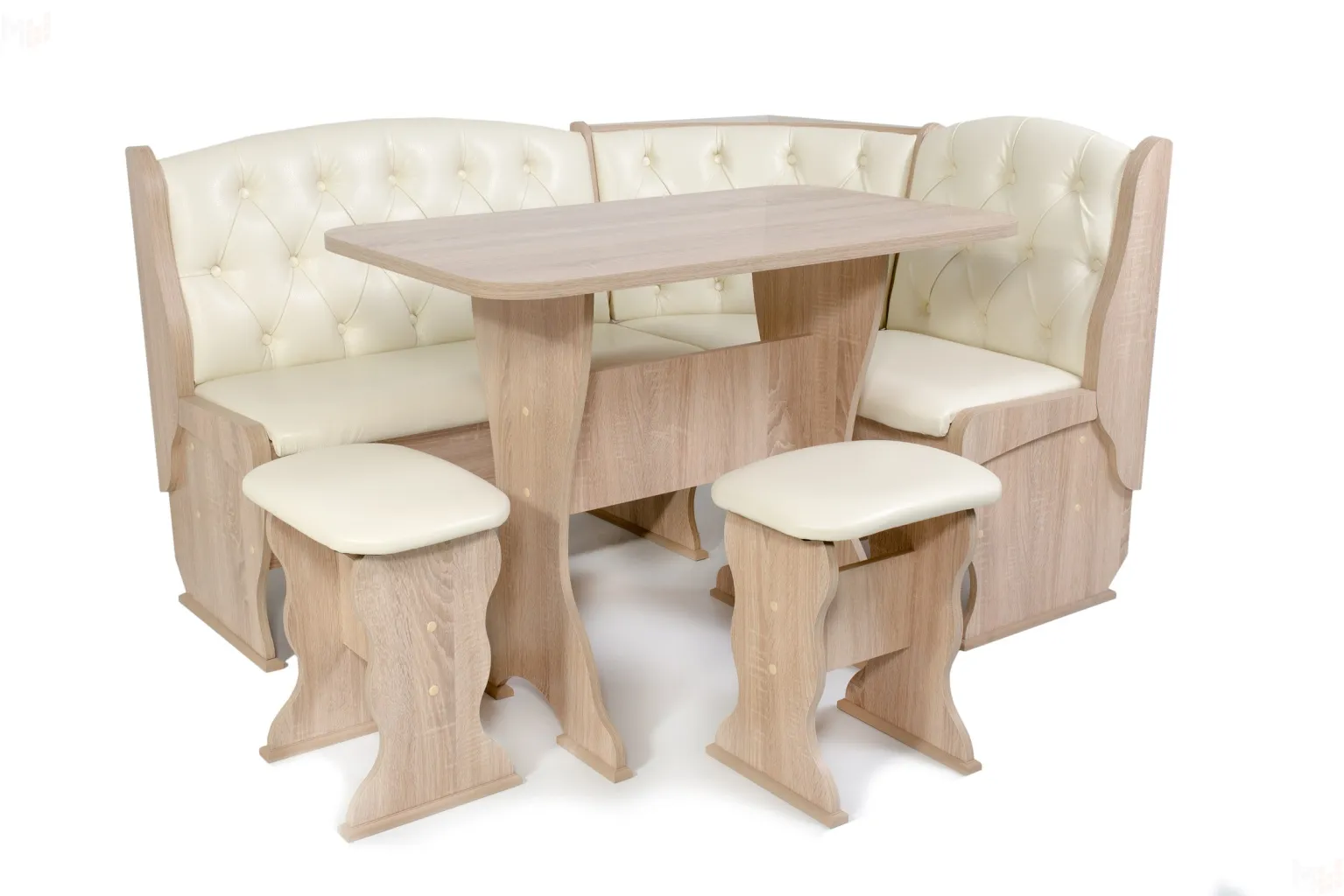 Оригинальный дизайн гарнитура станет украшением Вашей кухонной зоны и местом встреч для семейных вечеров за чашечкой горячего напитка. Угловую скамью можно собрать как в правом, так и в левом исполнении.