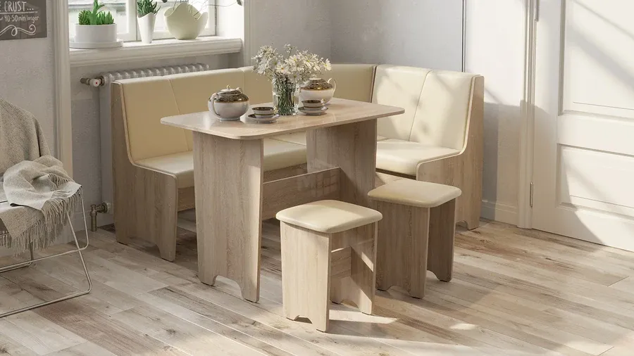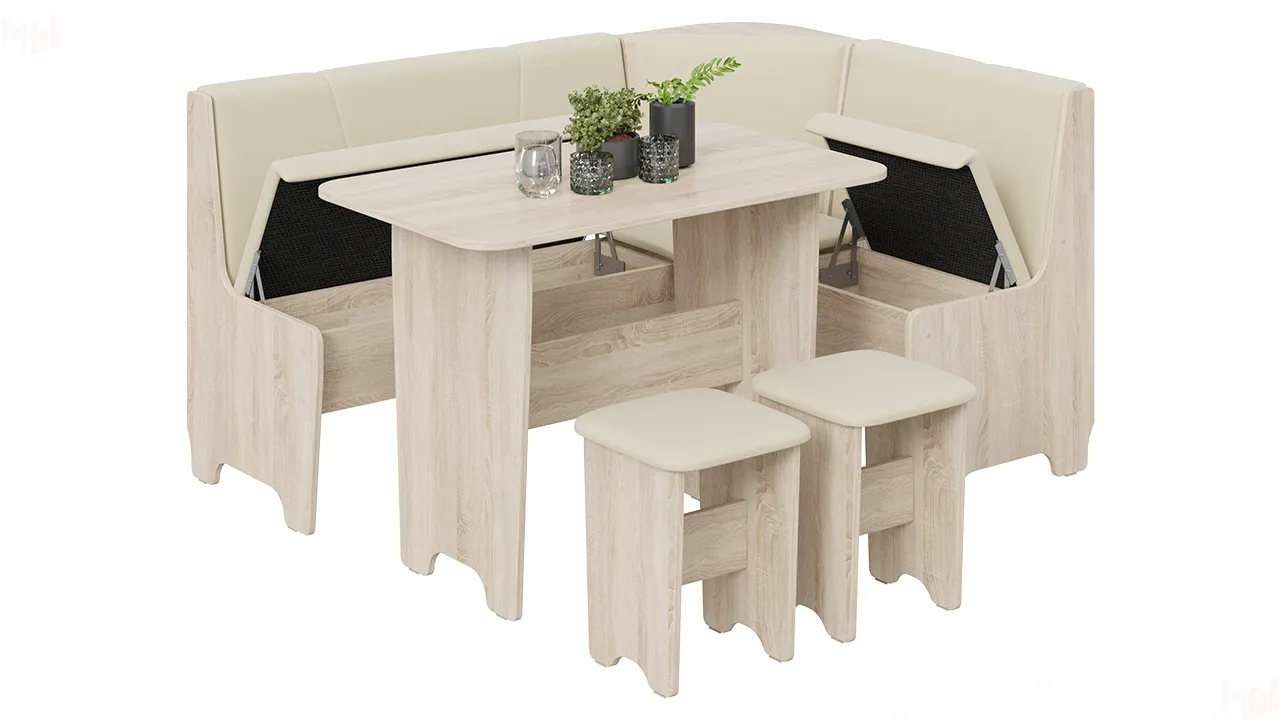 Кухонный уголок Техас Исп.1 Дуб Сонома, Экокожа бежевая