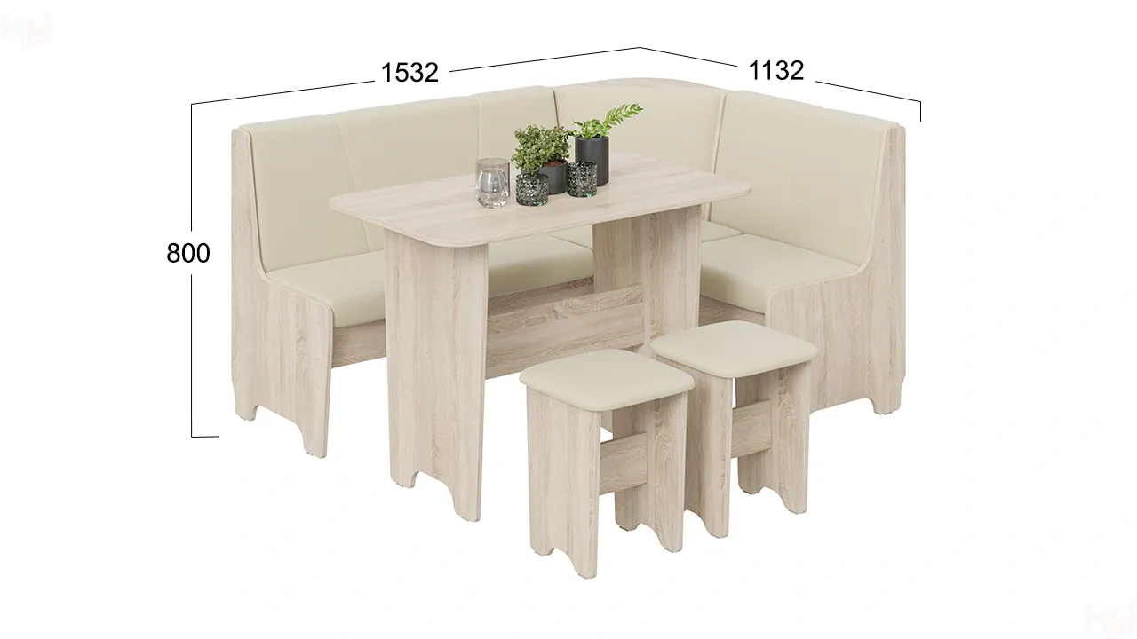 Ширина: 1132 мм, Длина: 1532 мм, Высота: 800 мм
