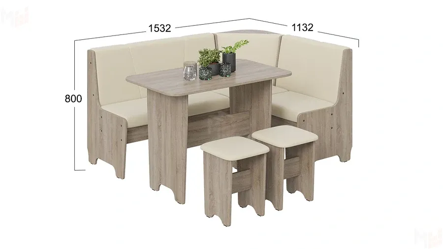 Ширина: 1132 мм, Длина: 1532 мм, Высота: 800 мм
