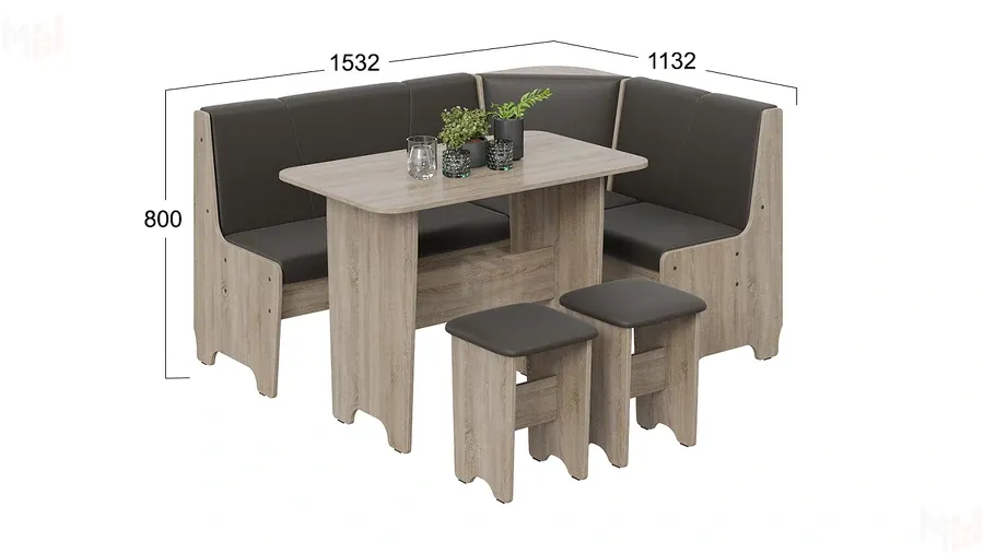 Ширина: 1132 мм, Длина: 1532 мм, Высота: 800 мм