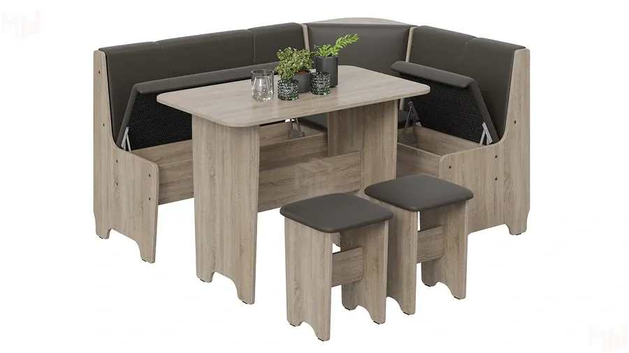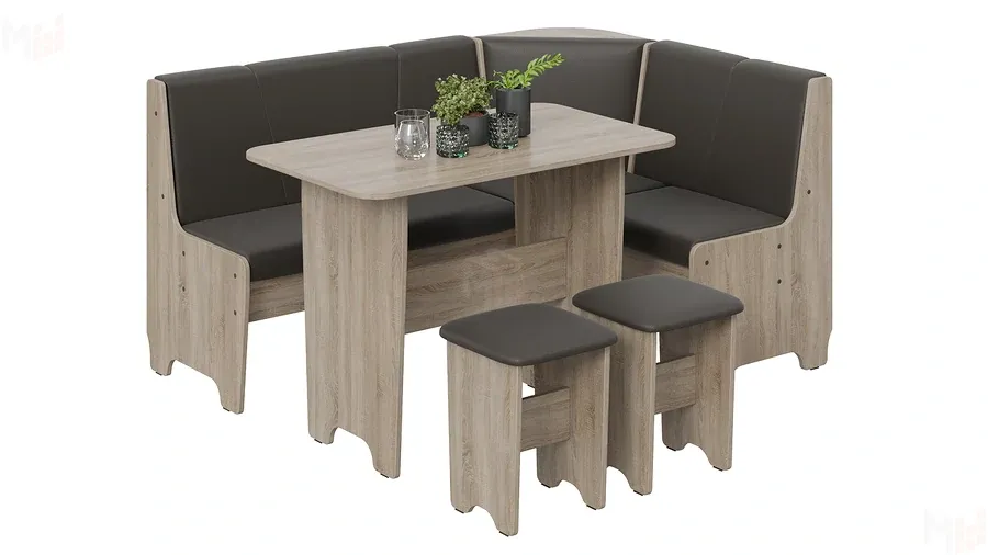 Кухонный уголок Техас Исп.1 Дуб Сонома трюфель, Экокожа коричневая