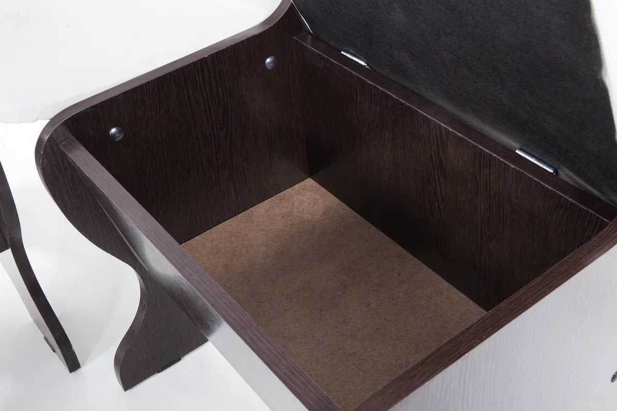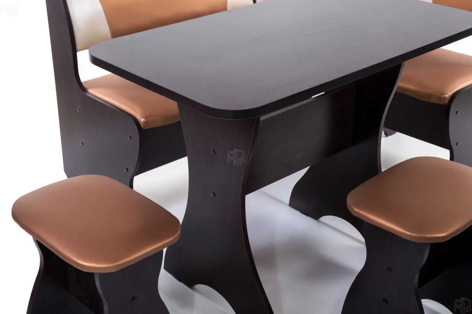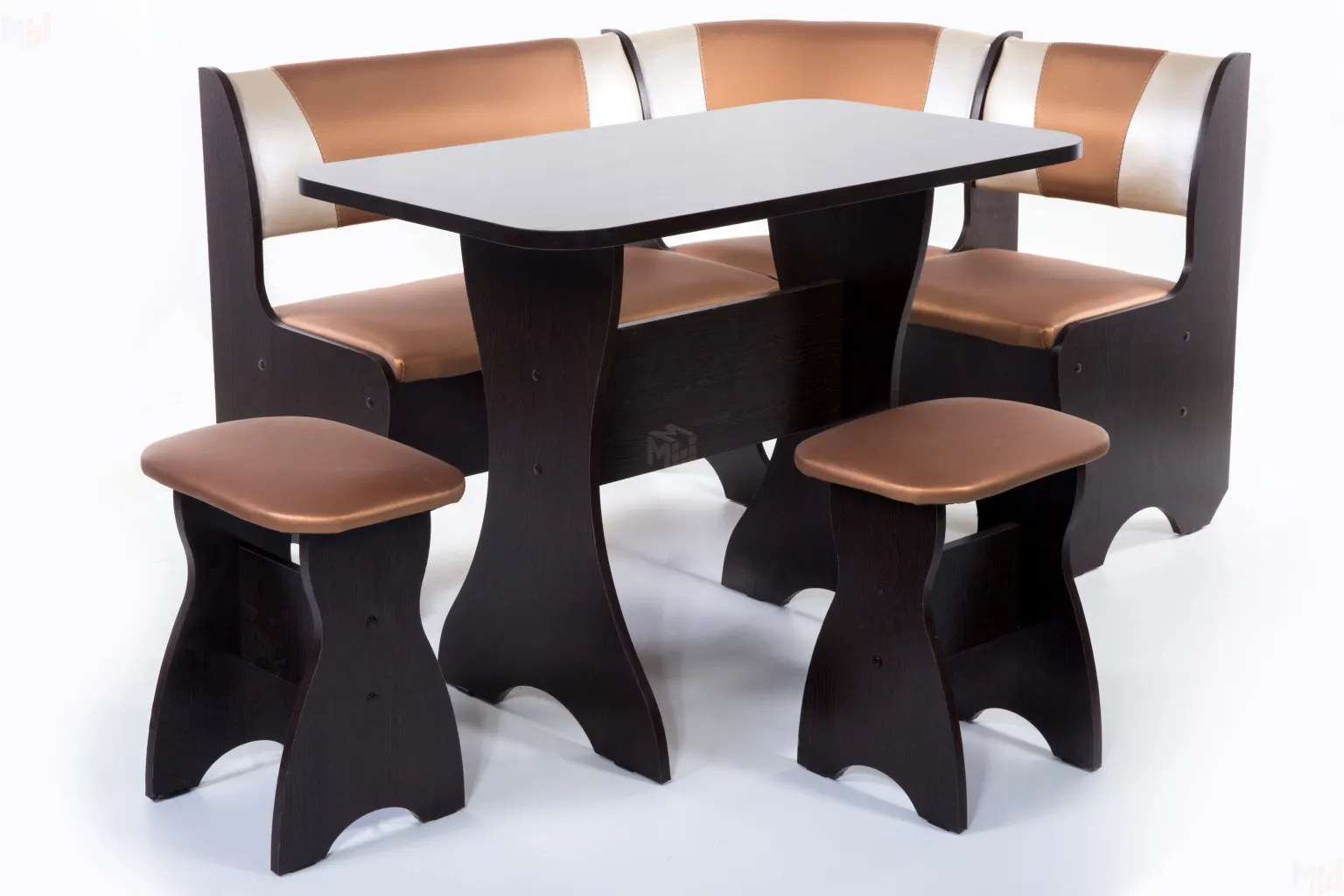 Каркас выполнен из ЛДСП цвета венге, обивка кожзам Терра эффект 109/101.