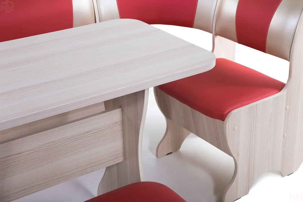кухонная скамья с размером 1100 мм на 1350 мм, с внутренними ящиками для хранения под сидением.