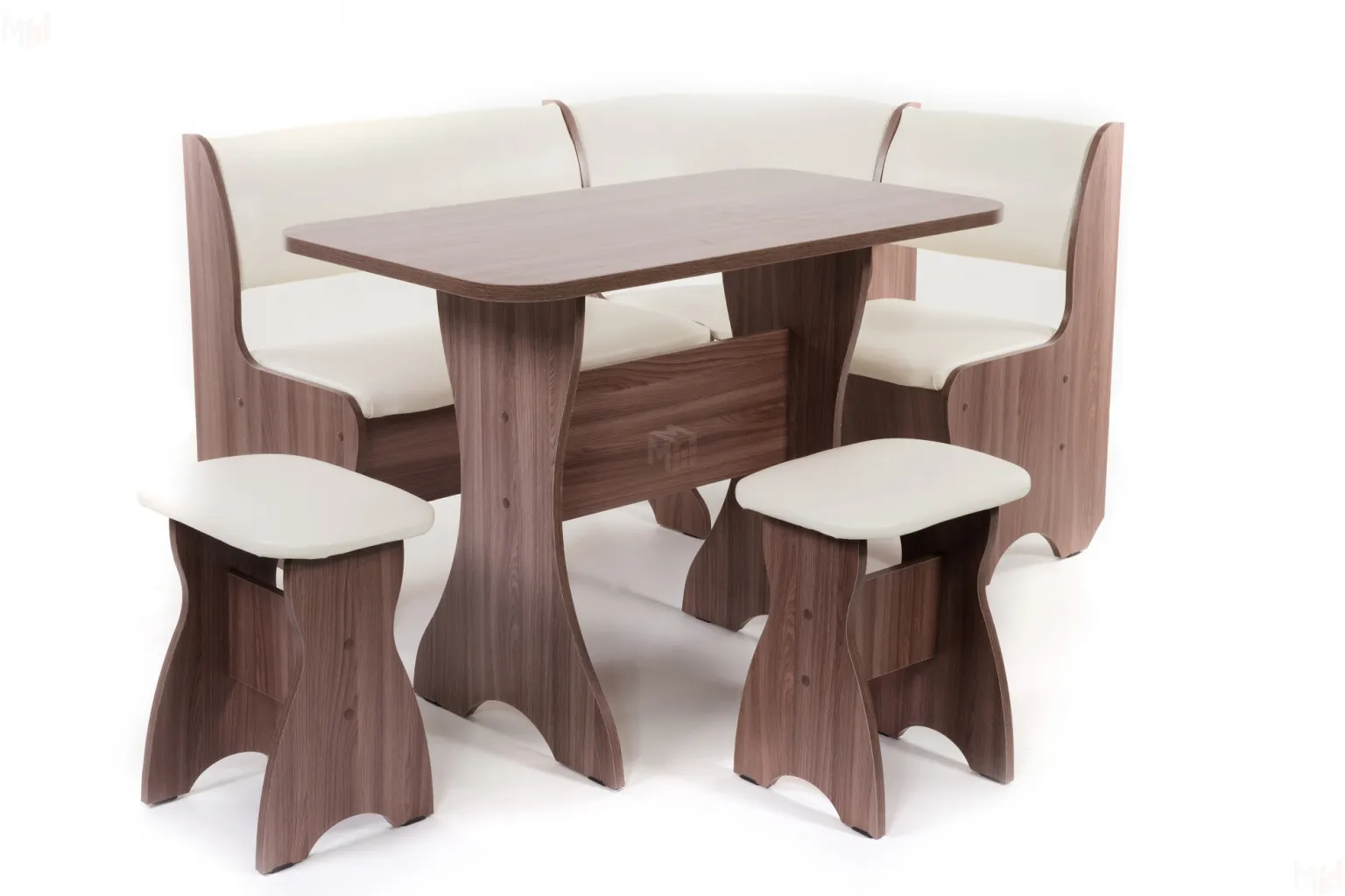 Каркас выполнен из ЛДСП цвета ясень темный, обивка кожзам крем.